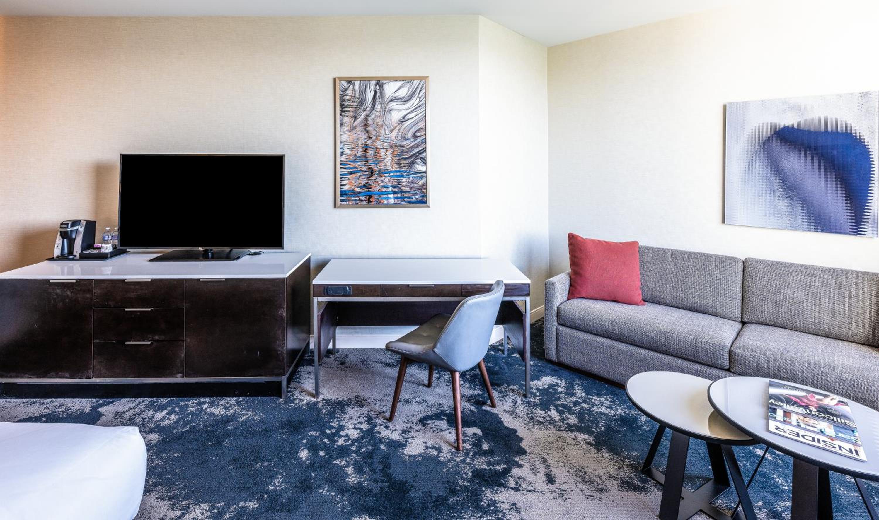 near my office, I thought I would make this my go-to hotel to stay at when I don't want to make the long drive home and sit in traffic, i could just some here and stay a night or two and go home another day. my view was of a rooftop with rocks, parking was $30 a day and there is a Las Vegas-style resort fee?! the Radisson down the street has a pool and they don't charge a resort fee. greed. wont do it. I go to the Radisson now.