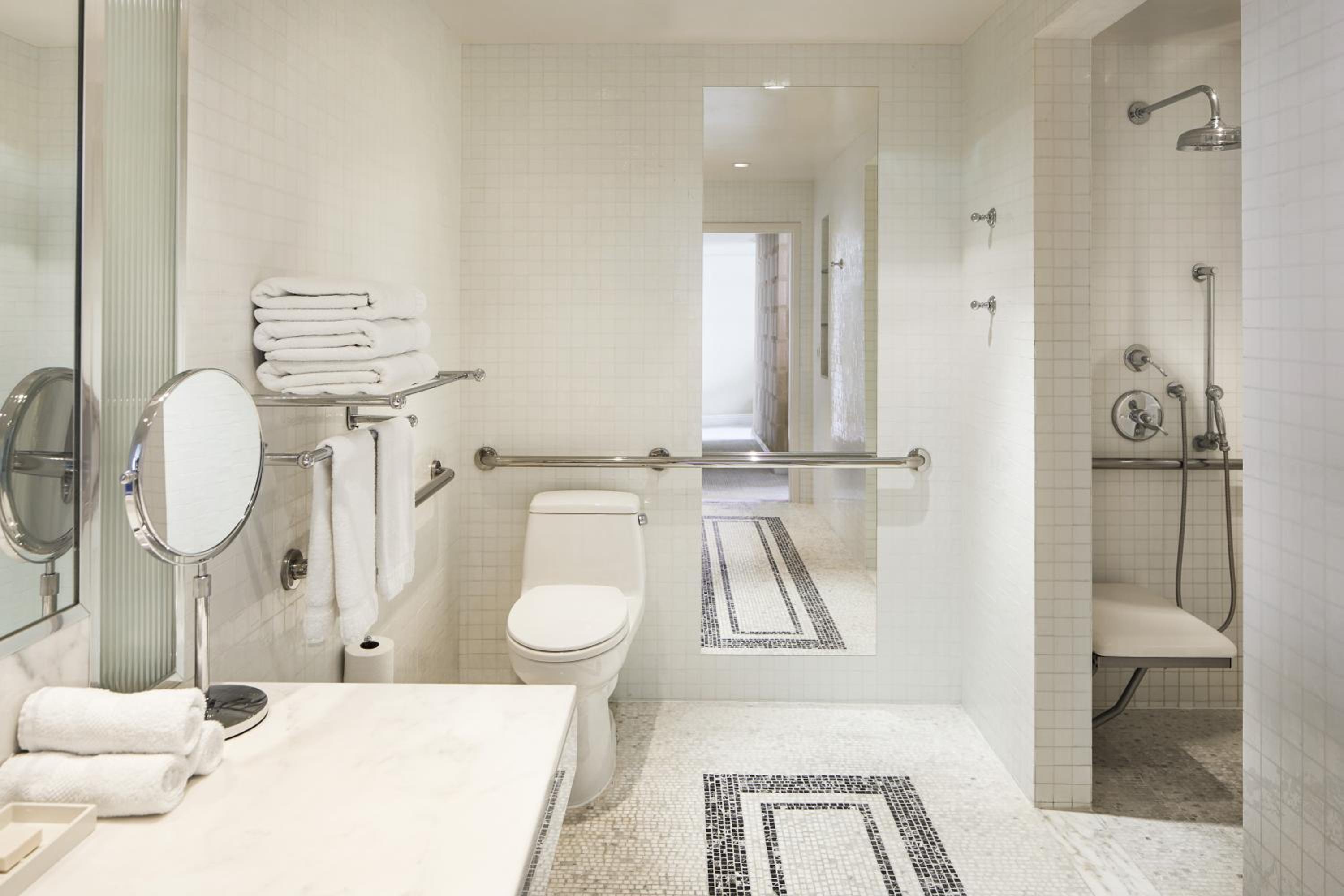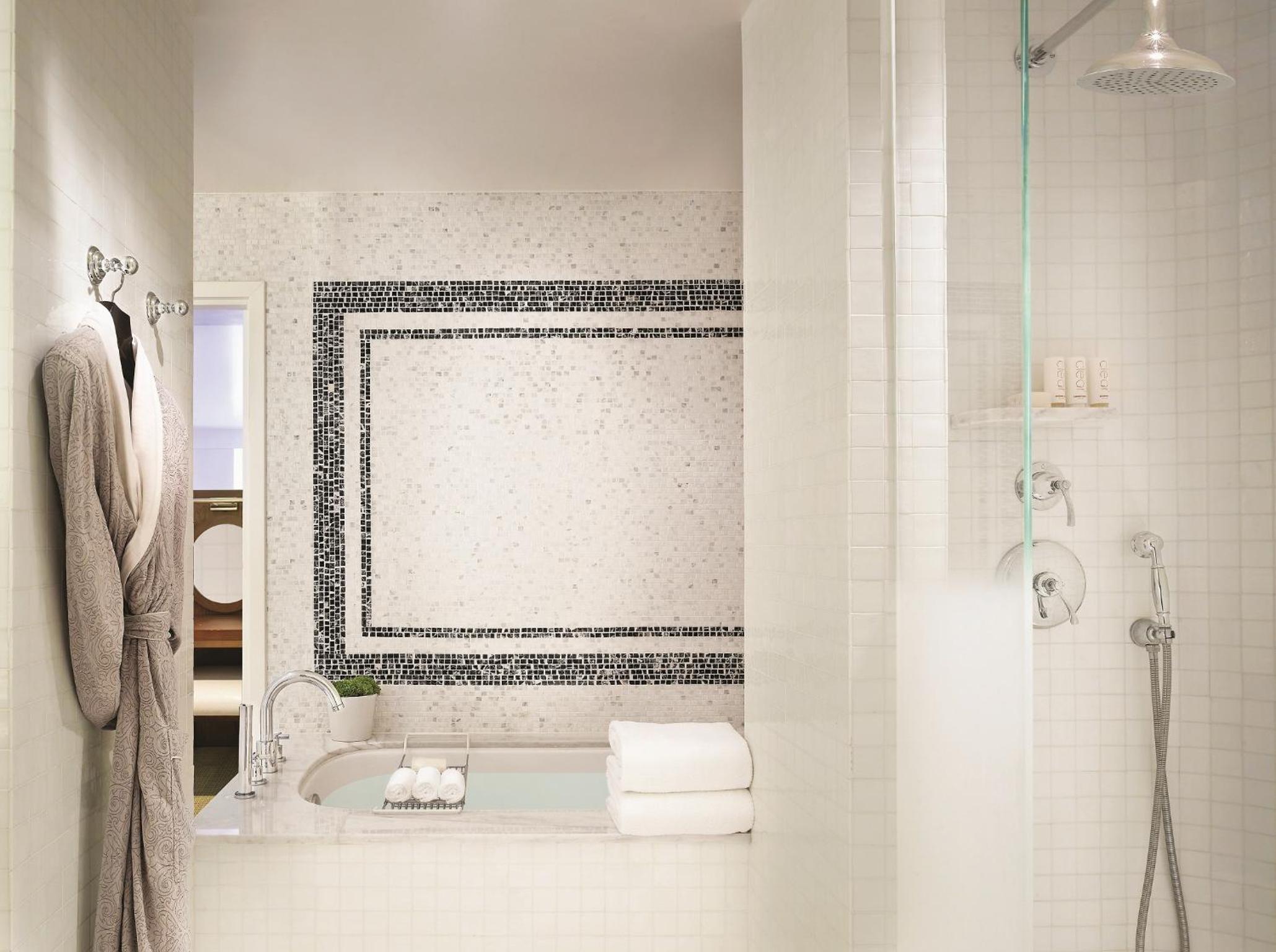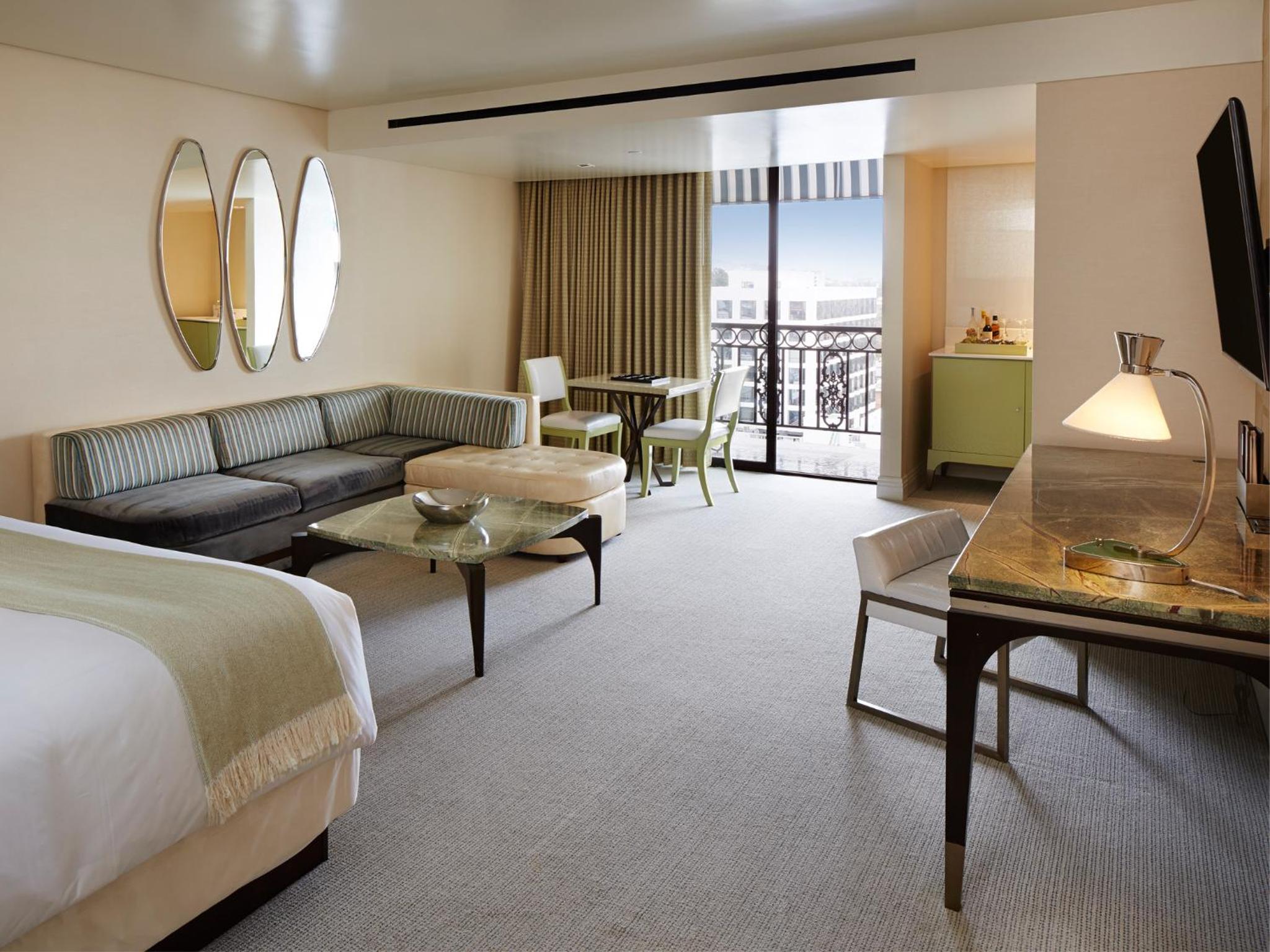 The London West Hollywood offers spacious suites with modern amenities including flat-screen TVs, iPod docking stations, and walk-in showers with soak tubs. Guests can enjoy complimentary breakfast and stunning views from balconies in most suites.