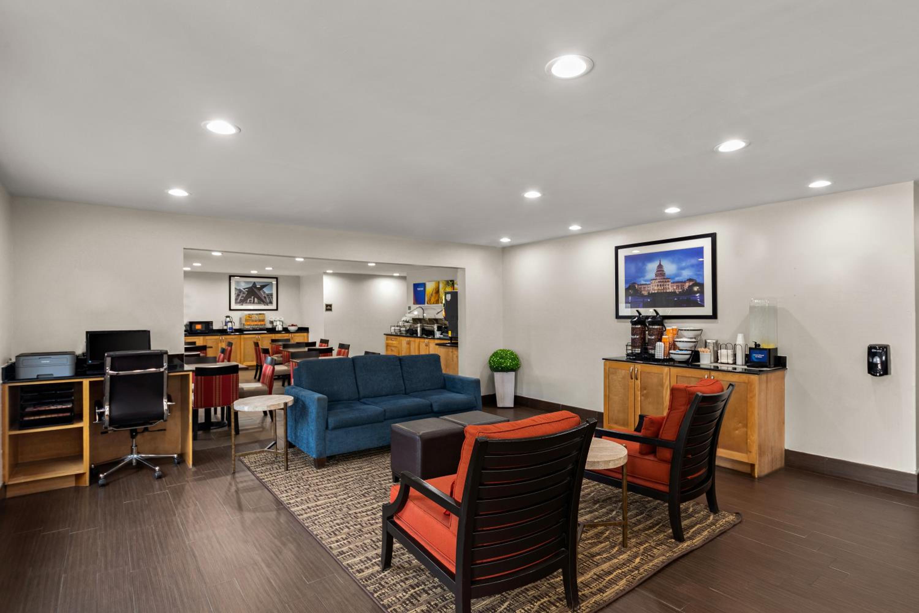 Convenient Location: The Comfort Inn & Suites ATX North is situated near Highland Mall and the University of Texas at Austin, with easy access to popular attractions like Austin city centre, museums, and parks.