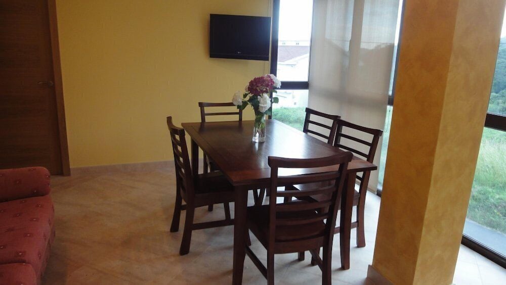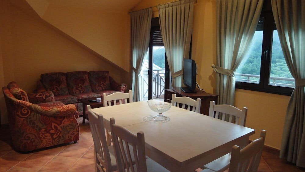 Enjoy the serene ambiance of the terrace and garden views offered at Apartamentos Rurales Abelleira. The perfect backdrop for a relaxing getaway.
