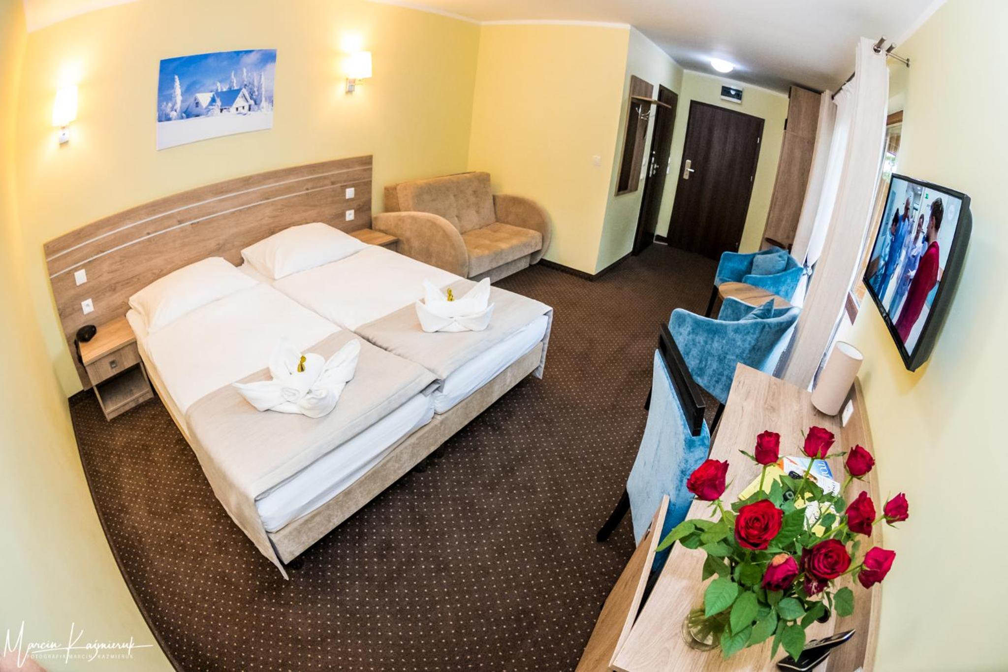 Śmiało mogę pochwalić hotel , jest to pierwszy raz kiedy jestem tak zadowolona z pobytu 😍 udogodnienia , spa, bar, kręgle -idealne połączenie i zapewnienie dobrego wieczoru .