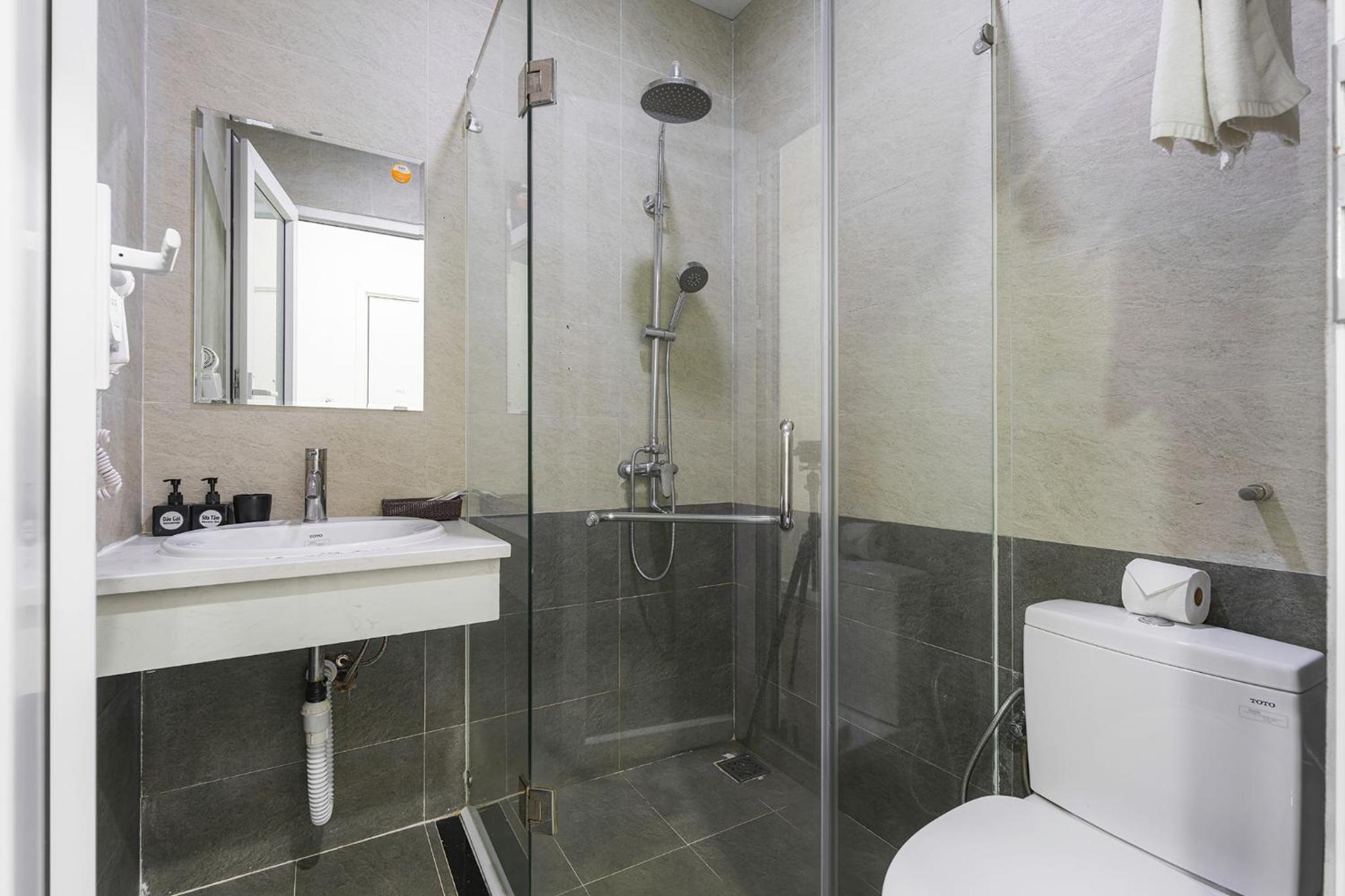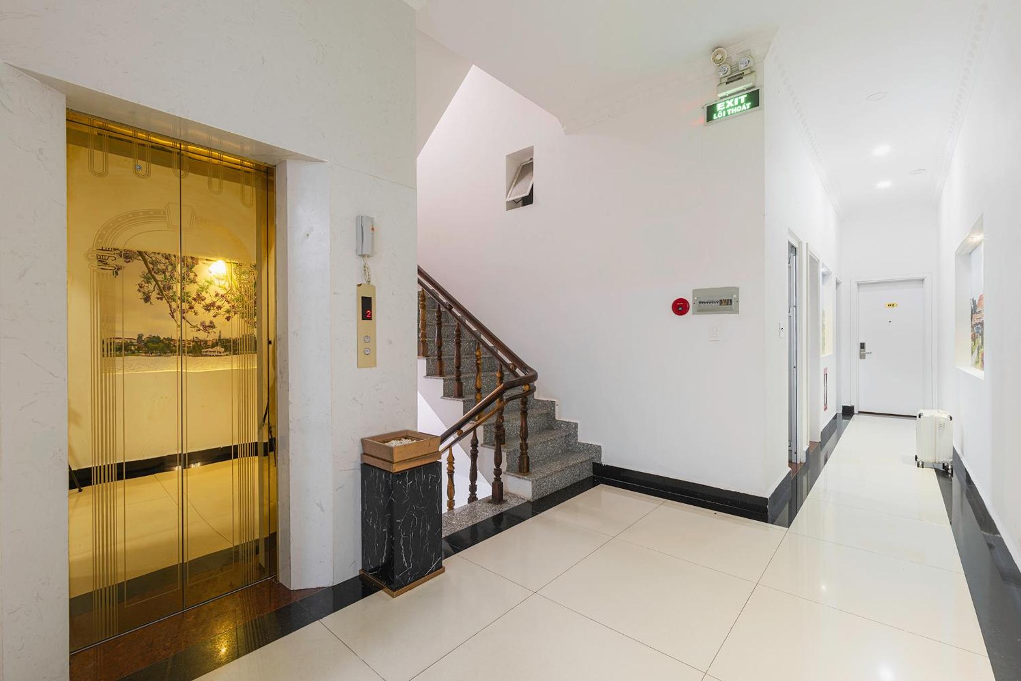 Vị trí thuận lợi, có thang máy, phòng có ban công thoáng.