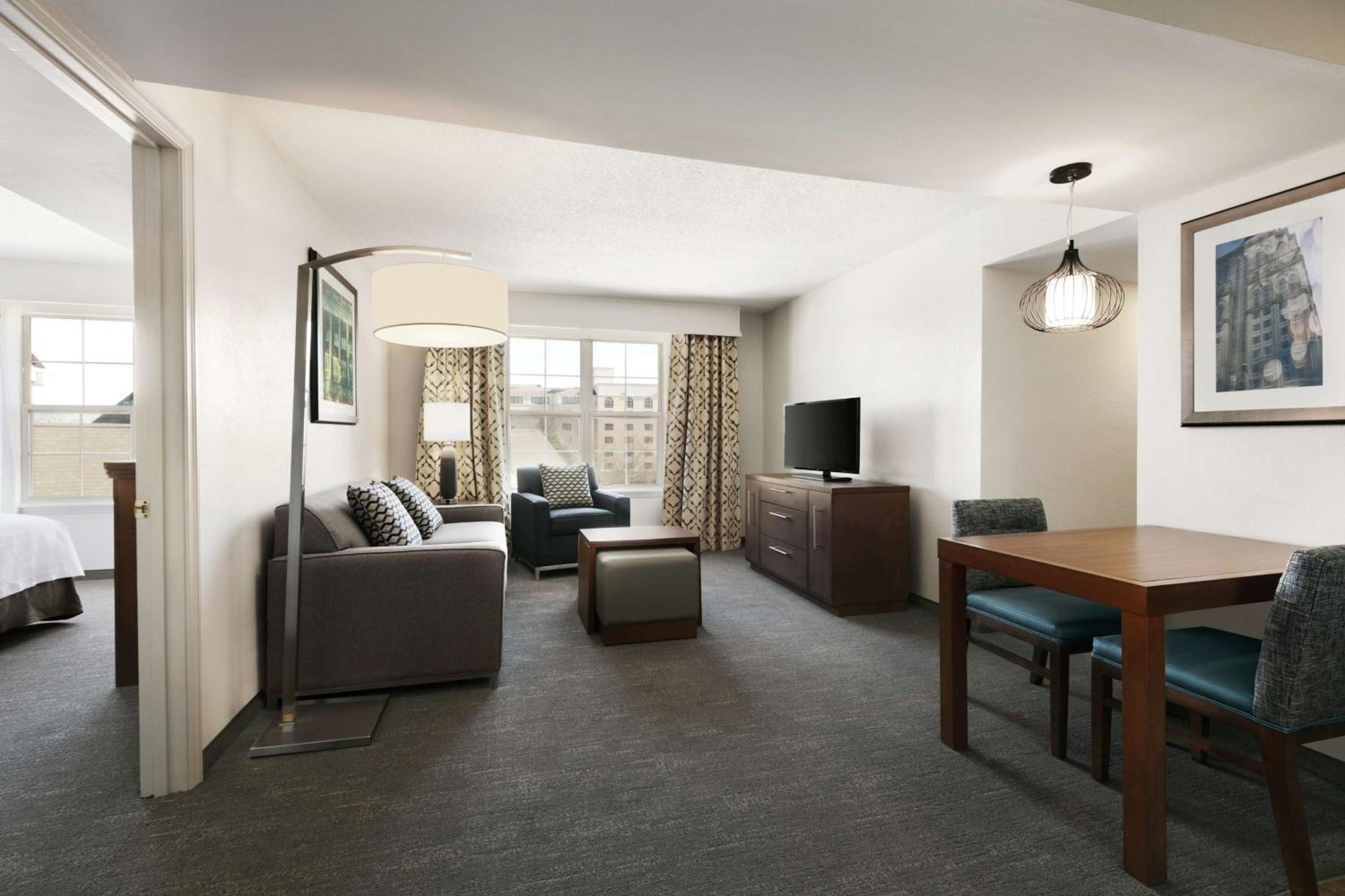 Unwind at the Homewood Suites Kansas City-Airport where you can enjoy the convenience of in-room full kitchens, ideal for extended stays or quick snacks. Located minutes away from major corporations and the airport, our all-suite hotel offers free airport transfers for a stress-free arrival and departure.
