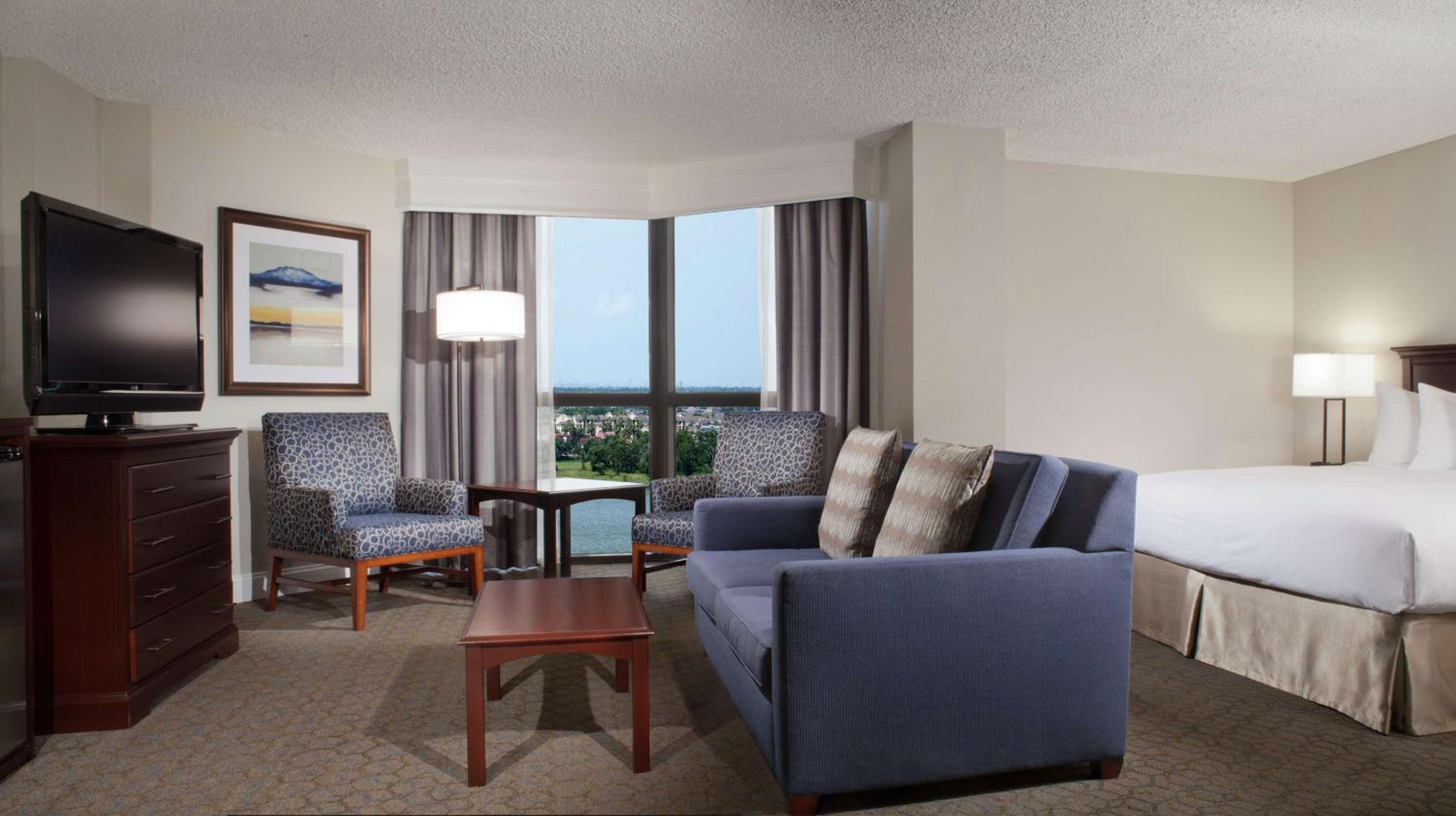 Experience the perfect blend of lakeside serenity and space exploration excitement at the Hilton Houston NASA Clear Lake. Just minutes away from Kemah Boardwalk and a short drive from Hobby Airport and downtown Houston, this hotel offers modern amenities like high-speed internet and on-site dining at Luna restaurant. Whether you're here for business or leisure, our spacious accommodations and state-of-the-art fitness center ensure a comfortable stay. Book now and elevate your travel experience with us.