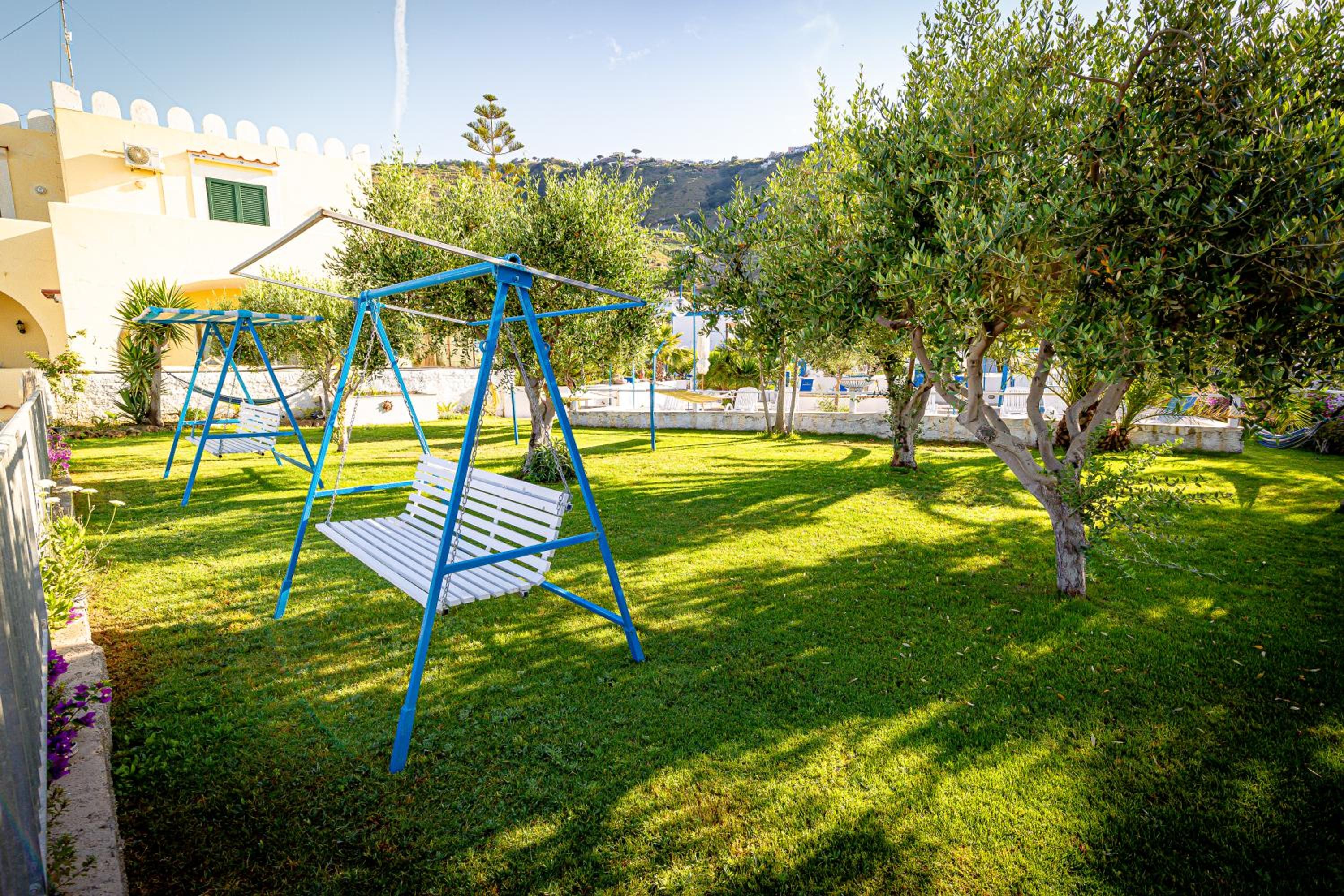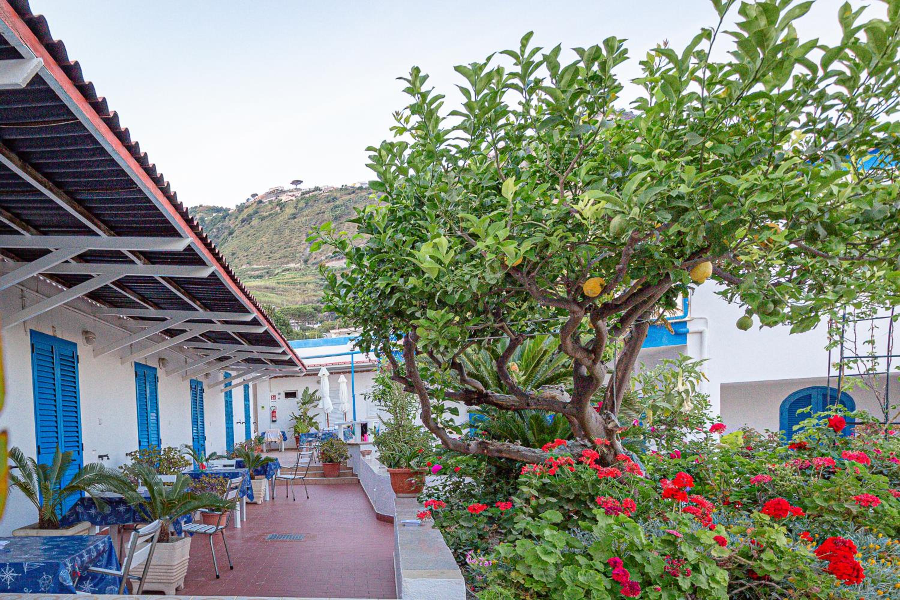 Tranquil Garden Oasis: Pensione Casa Adolfo boasts a serene furnished garden and a relaxing sun terrace, perfect for unwinding under the Mediterranean sun.
