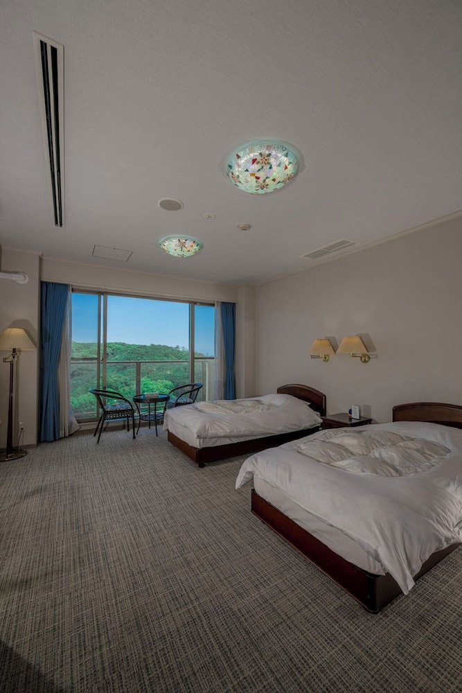 급하게 예약하느라 남아있는 호텔중 리뷰점수 높은곳으로 선택했어요 일단 위치는 좀 구석진곳에 있었지만 렌트카로 이동해서 괜찮았어요 바다뷰라 아침에 일출도 볼수있어요 주변에 식당이 별로 없어서 차타고 20분정도 나가야하니까 미리 식사하고 입실 하시는걸 추천합니다 일본식 다다미 룸이라 비지니스호털보다 넓어요. 1층에 야외가 보이는 작은 대중탕이 있어서 피로풀기에 좋았어요 전체적인 느낌은 살짝 낡은 느낌은 있지만 조용하고 가성비 좋은 3성급 호텔느낌이에요 크게 기대 안해서 그럴수도 있어요