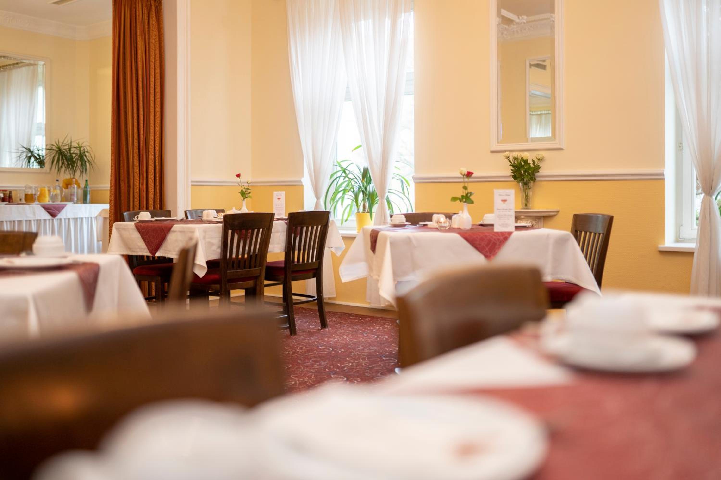 Sehr ansprechend , wunderbare Gründerzeitvilla . Treppenhaus und Frühstücksraum sehenswert . Zimmer und Bad klein aber fein . Frühstück sehr gut , alle Wünsche wurden erfüllt.
