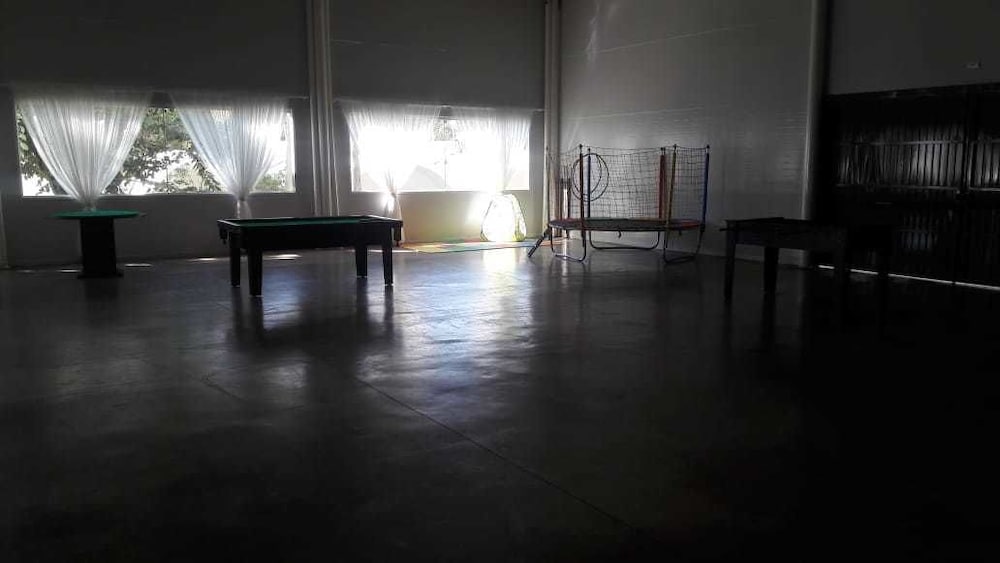 A piscina interna, de água quente, é verdadeira gambiarra. Fecharam um corredor e encheram de água. Uma piada.