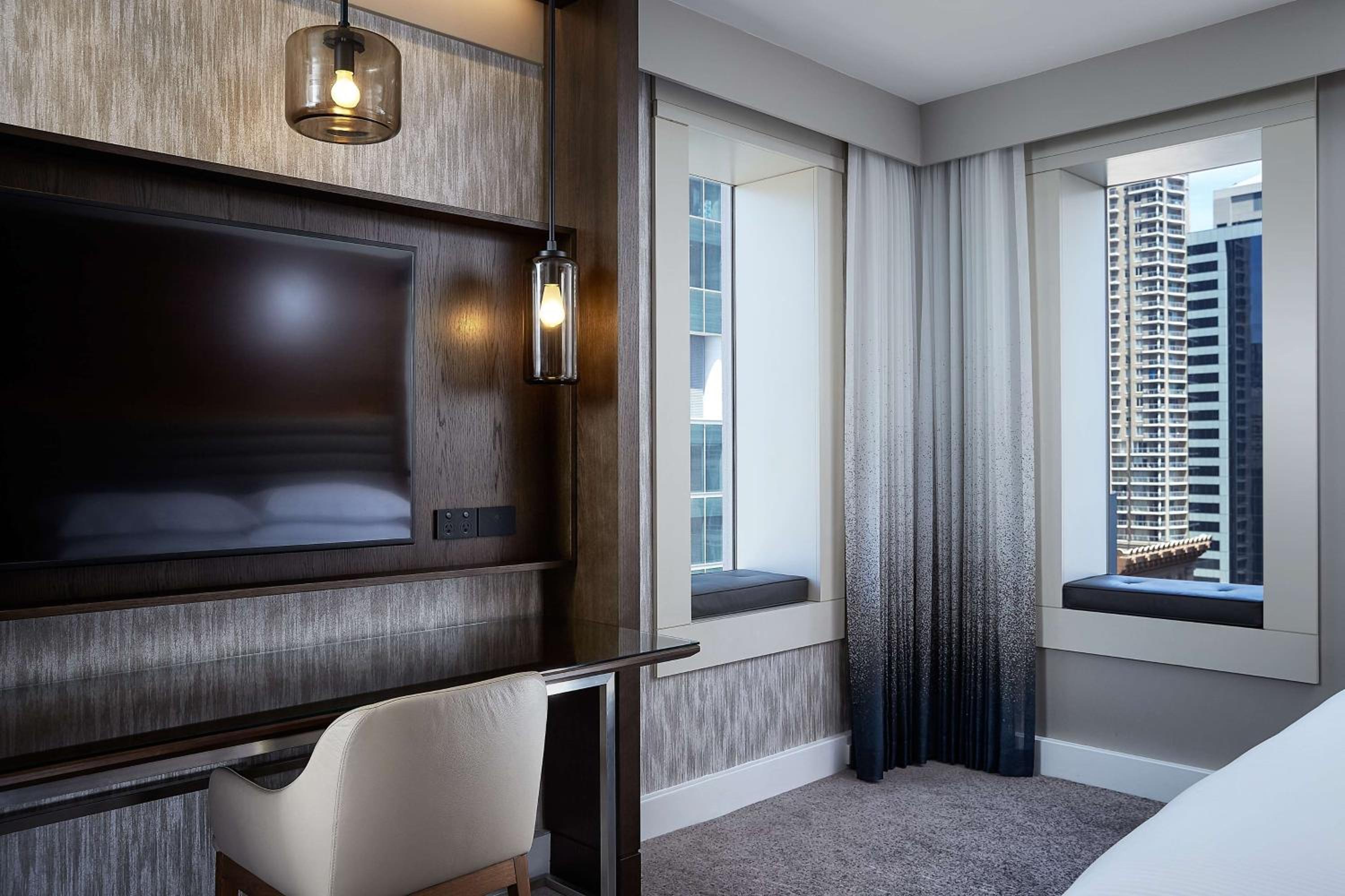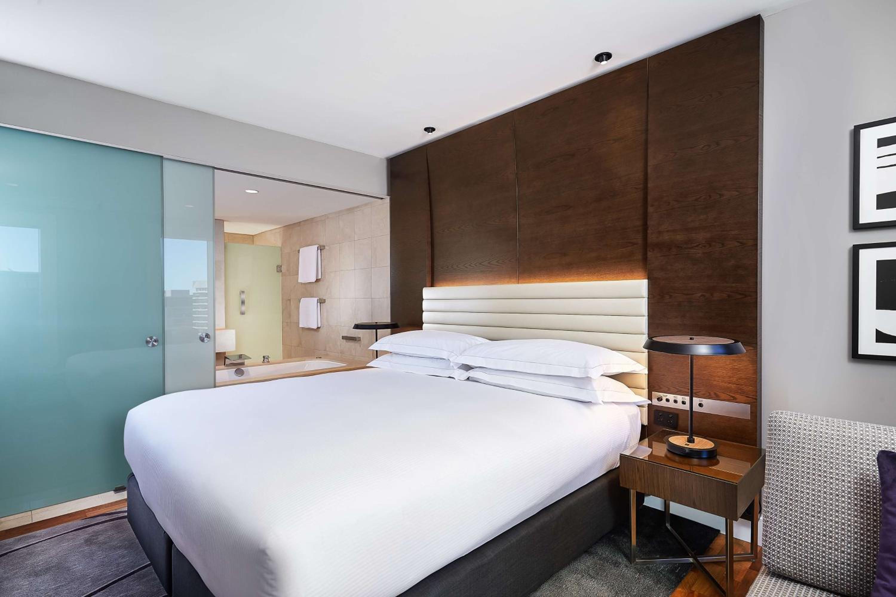 Experience modern amenities and spacious rooms at Hilton Hotel Sydney, including luxury bathrooms and LCD TVs. Select rooms even feature black-out blinds and a dedicated work area for your convenience.