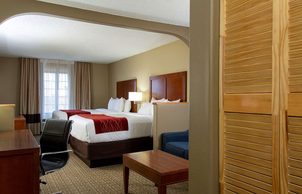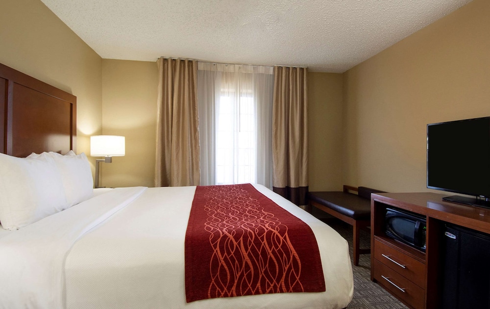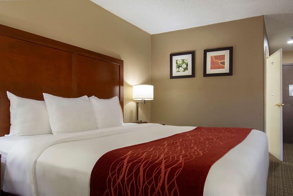 We’ve stayed in Comfort Inns across the whole country. This is by far the worst place we’ve ever stayed. It should not be open. The lobby and hallways smelled bad, garbage was piled up at the entry and the clerk couldn’t care less, she was rude and obnoxious and said there was nothing she could do since the entire staff left at three, this was at 4:30, half the lights in the room didn’t work, the outlets were loose, the tv didn’t work, carpet was dirty and sticky, beds very uncomfortable, the frame had a piece of steel broken and cut my leg, and the luggage cart wheels were nearly falling off making it almost impossible to steer. Definitely not a good stay.