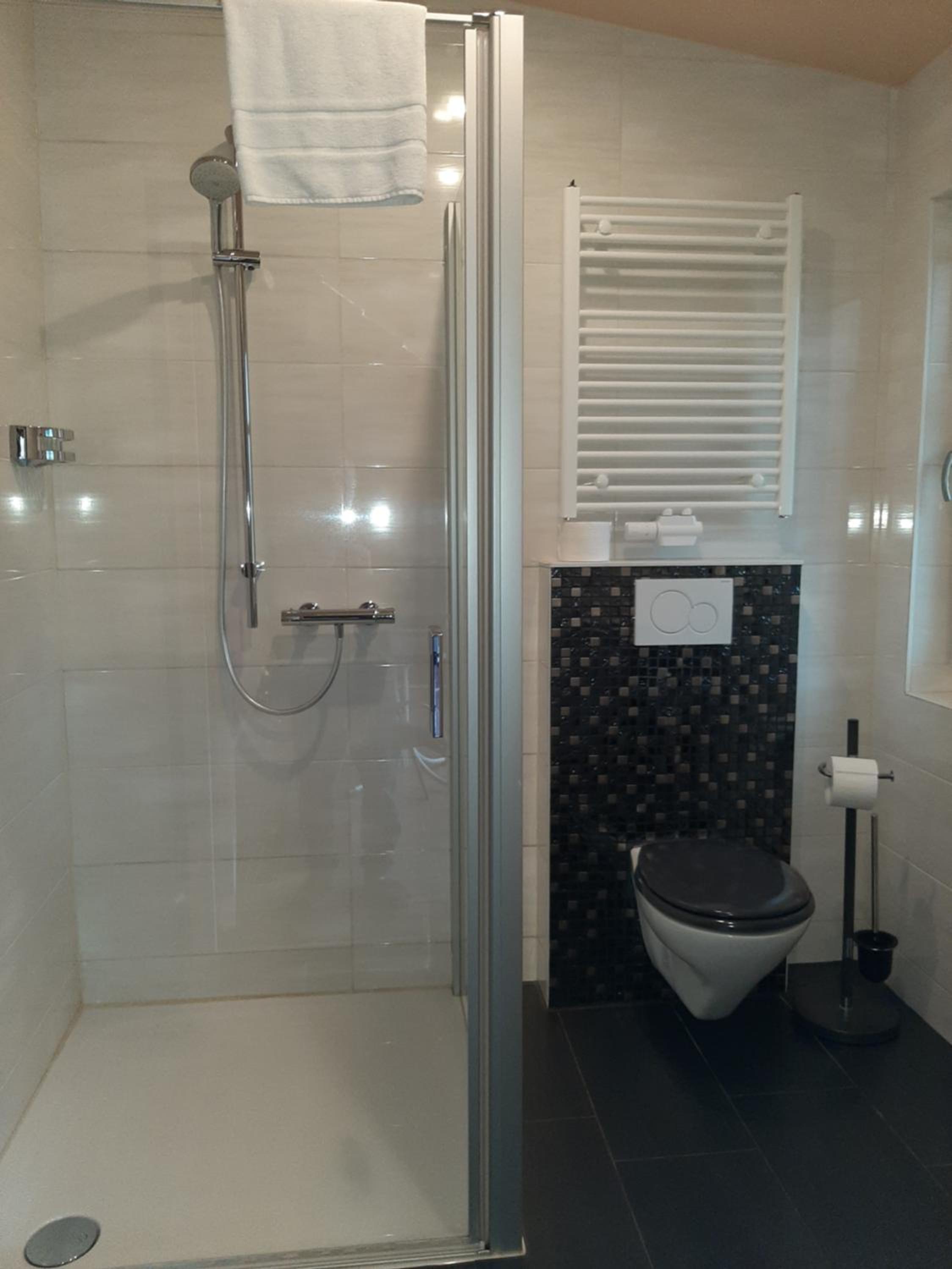 Geräumige, ruhige Zimmer mit großem Bad und moderner begehbarer Dusche. Sehr gutes Frühstück.