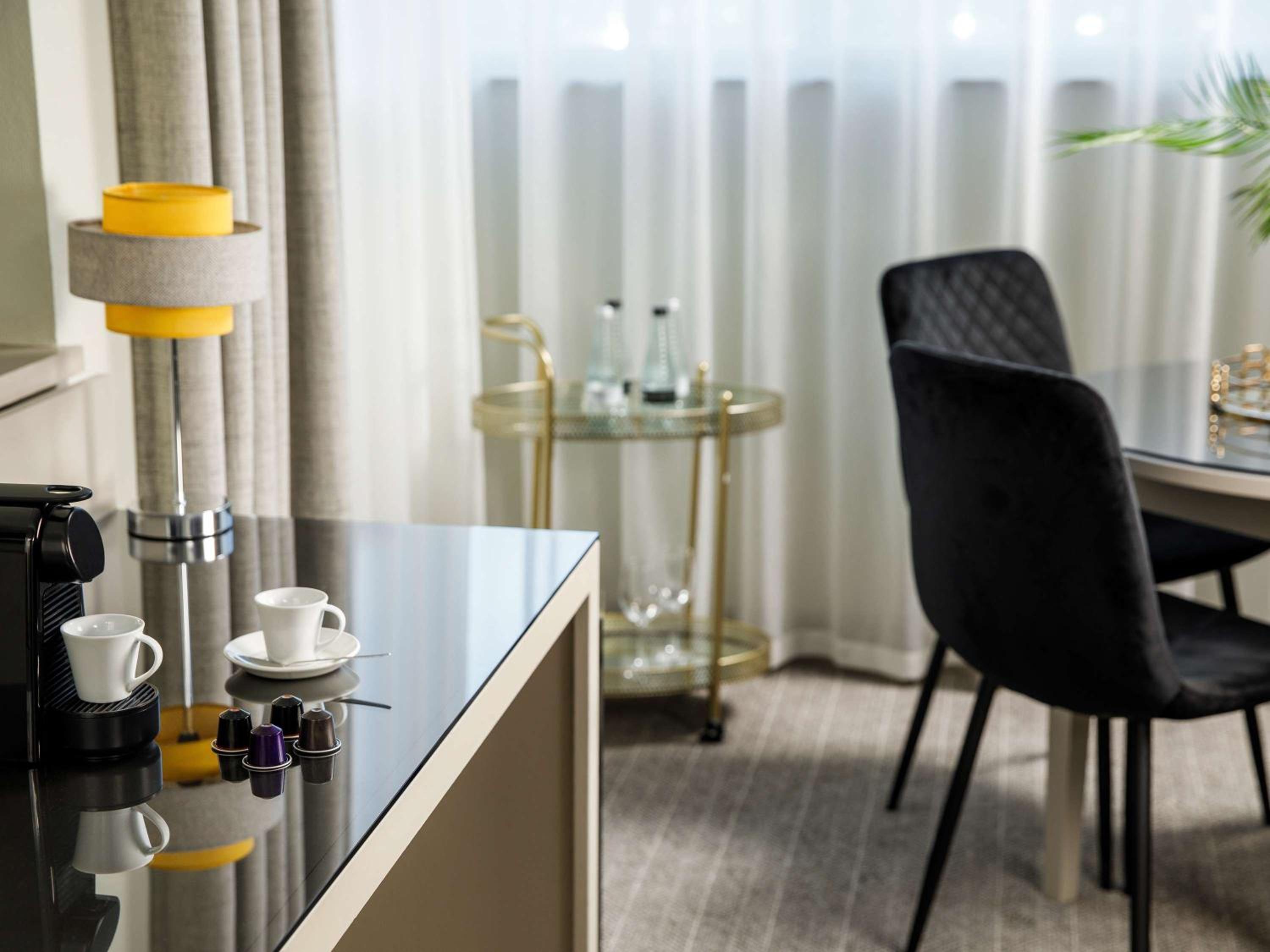 Indulge in air-conditioned rooms with HD LED TVs, high-speed WiFi, and Nespresso machines in Privilege and Superior rooms. Treat yourself to a full English breakfast at the Brasserie Restaurant or savor Manchester-inspired afternoon tea.