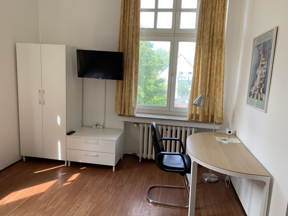 This is a very unique hotel in a historic bank/local government building. The room was very large, extremely clean and had a great bathroom. The bed was very comfortable. Just outside are main bus stops to anywhere in Werden. There are two bakeries and several nice restaurants within easy walking distance. The hotel proprietor is friendly and knowledgeable. The tea room is very well stocked with dishes, cooking utensils, fridge and dishwasher. There is even a fridge with inexpensive Bier and water for sale. Free tea and coffee. The Rathaus 1910 is in a very quiet and safe neighborhood and is easily reached from the Werden S-Bahnhof by bus or a 2 km walk uphill (take the bus!). I very highly recommend this hotel.Dies ist ein sehr einzigartiges Hotel in einem historischen Bank-/Gebäude der Kommunalverwaltung. Das Zimmer war sehr groß, äußerst sauber und hatte ein tolles Badezimmer. Das Bett war sehr bequem. Direkt vor der Tür befinden sich die wichtigsten Bushaltestellen zu allen Zielen in Werden. Zwei Bäckereien und mehrere nette Restaurants sind bequem zu Fuß erreichbar. Der Hotelbesitzer ist freundlich und kompetent. Die Teestube ist sehr gut ausgestattet mit Geschirr, Kochutensilien, Kühlschrank und Geschirrspüler. Es gibt sogar einen Kühlschrank mit preiswertem Bier und Wasser zum Verkauf. Kostenloses Tee und Kaffee. Das Rathaus 1910 liegt in einer sehr ruhigen und sicheren Gegend und ist vom S-Bahnhof aus bequem mit dem Bus oder einem 2 km langen Fußweg bergauf (
