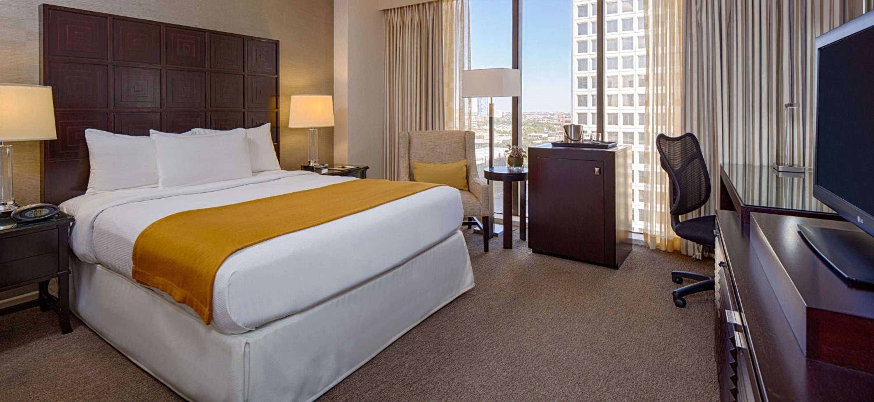 Experience the breathtaking beauty of Houston's skyline from our spacious rooms at DoubleTree by Hilton Hotel Houston Greenway Plaza. Enjoy floor-to-ceiling windows that offer stunning panoramic views, creating a memorable stay for our guests.