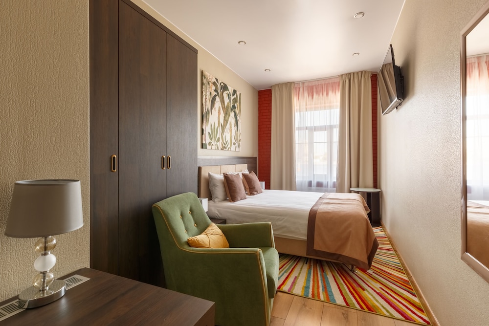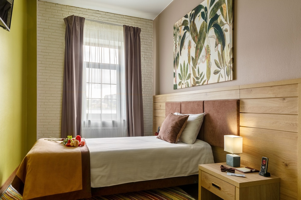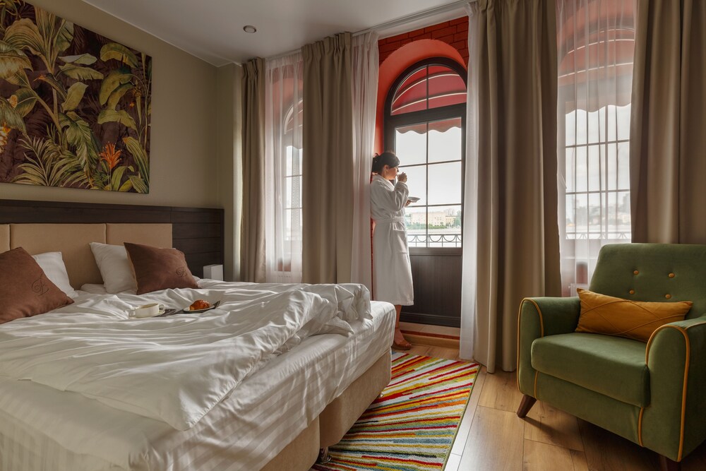 Очень понравился этот отель, просторный и уютный номер, чистая ванная комната, вид на внутренний двор (поэтому в номере тихо). В номере есть мыло,шампунь,гель для душа,тапочки,халаты,телевизор,чайник,стаканы,чай,кондиционер,большой шкаф для одежды,вешалка для уличных вещей в прихожей,кровати очень удобные. В ресторане очень уютно, отличные завтраки (шведский стол,есть всего понемногу- нарезка,яйца,запеканка,выпечка,овощи,оладьи,чай,кофе,хлопья,фрукты). Также можно получить единократнт комплимент-напиток от отеля с 17 до 22 в любой день. Отель расположен на набережной и из ресторана открывается вид на реку. Прекрасное обслуживание,официанты в ресторане следят за чистотой, на ресепшн также выполнили наше пожелание о предоставлении раздельных кроватей, при выселении угостили шоколадками- комплимент от отеля,мелочь,а приятно.