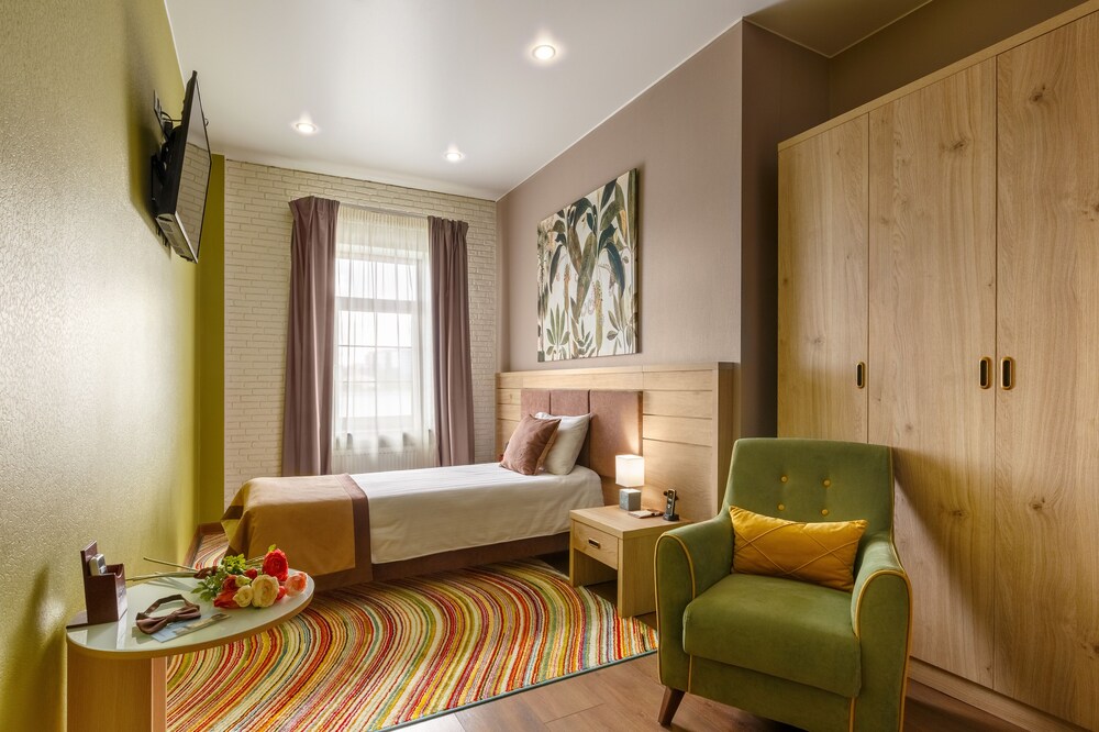 Отличная гостиница. Чувствовала себя как дома: уютно, современно, комфортно и чисто. У моего номера окна выходили во двор. Он очень ухоженный и чистенький. Приятно было находится в номере. Для меня был один минус это далеко от метро.