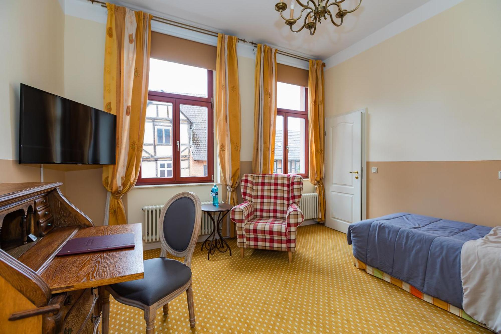 Located in Quedlinburg town centre, Hotel Zum Bär offers country-style rooms and a generous breakfast buffet. The hotel consists of 2 charming timber-framed buildings, each room equipped with a minibar, Wi-Fi, and modern bathroom for your comfort.