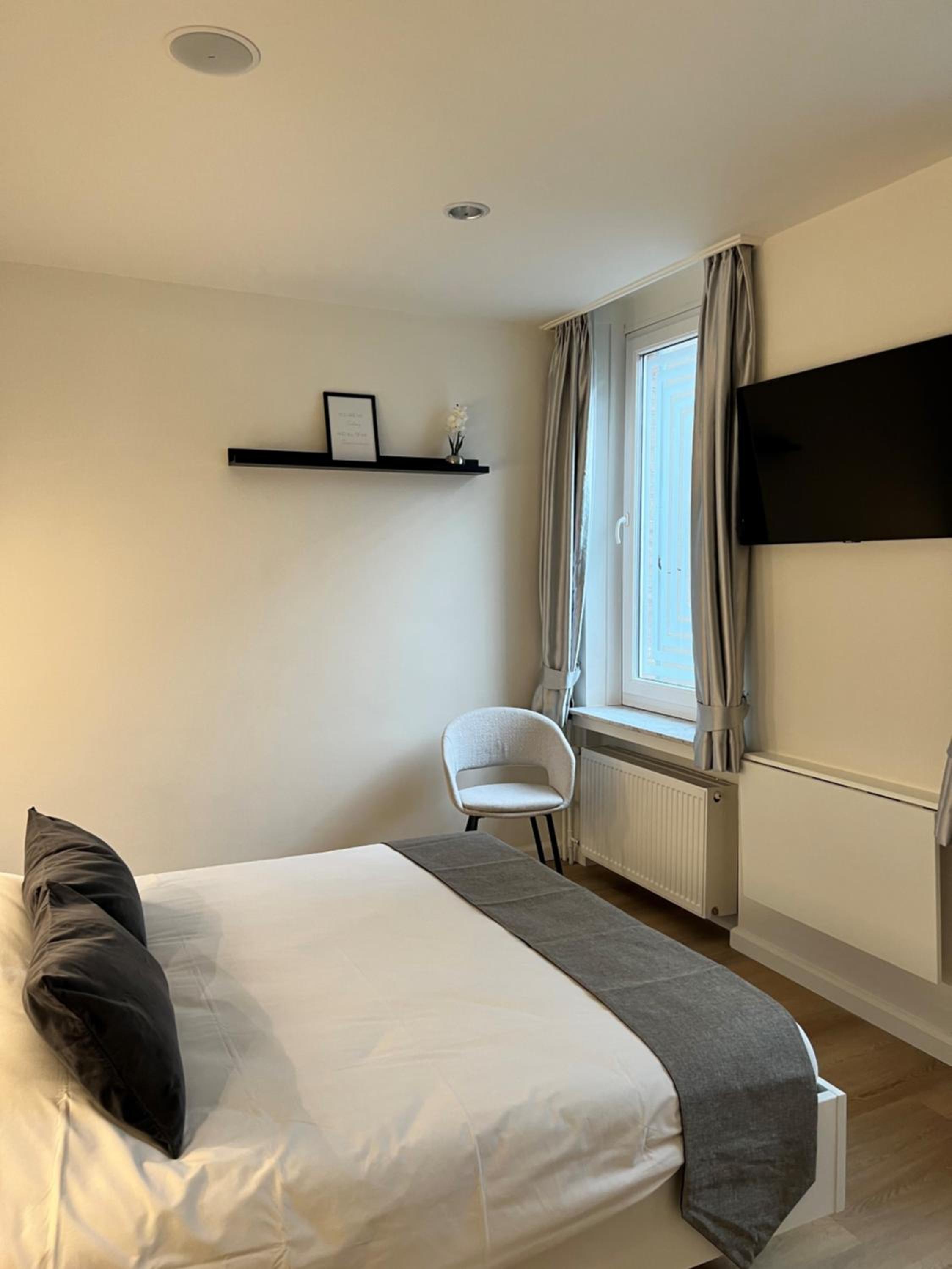 gezien de prijs was dit een zeer comfortabele nette kamer (nr 18), te bereiken met lift. Bed ok en zeer witte hoezen. De kamer was verwarmd en verlucht. Een grote TV. Er wordt aan de receptie gratis koffie en thee aangeboden 's morgens. Badkamer netjes en het kost als bezoeker geen moeite om een haardroger aan de receptie te vragen. Had een week eerder een heel slechte ervaring met een 3x zo dure kamer, vlakbij, aan de Italiëlei 113: kamer niet verwarmd en niet mogelijk om verwarming in te stellen, lavabo vies en verstopt, trappen en hallen zeer donker ... Airb&b is daar duidelijk enkel geldgewin, zonder aanwezigheid van bewoners van het pand ...