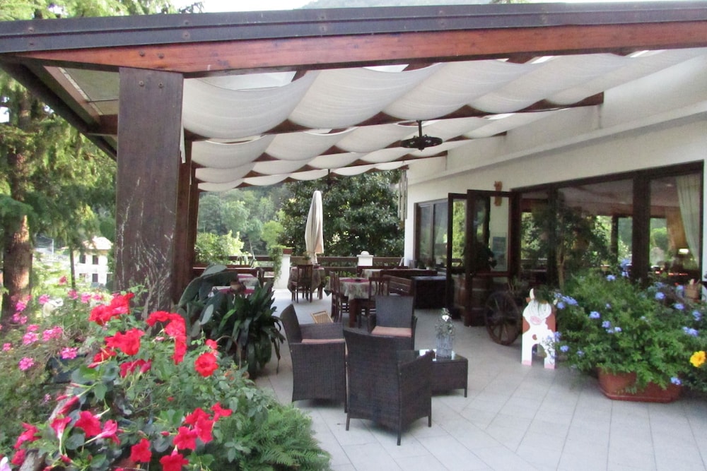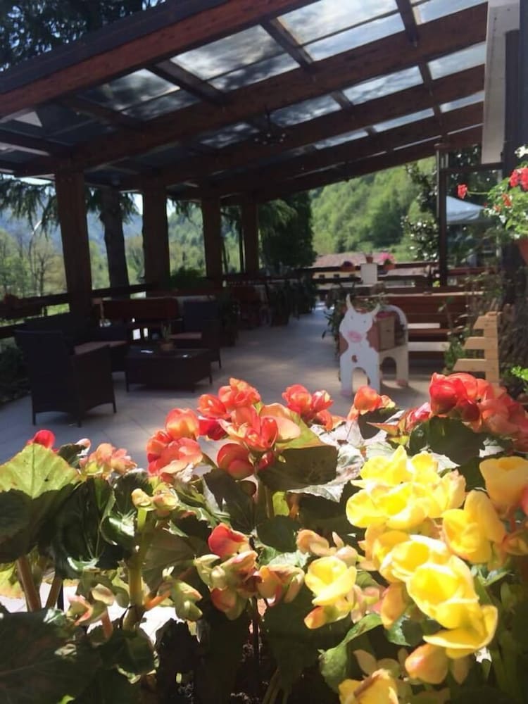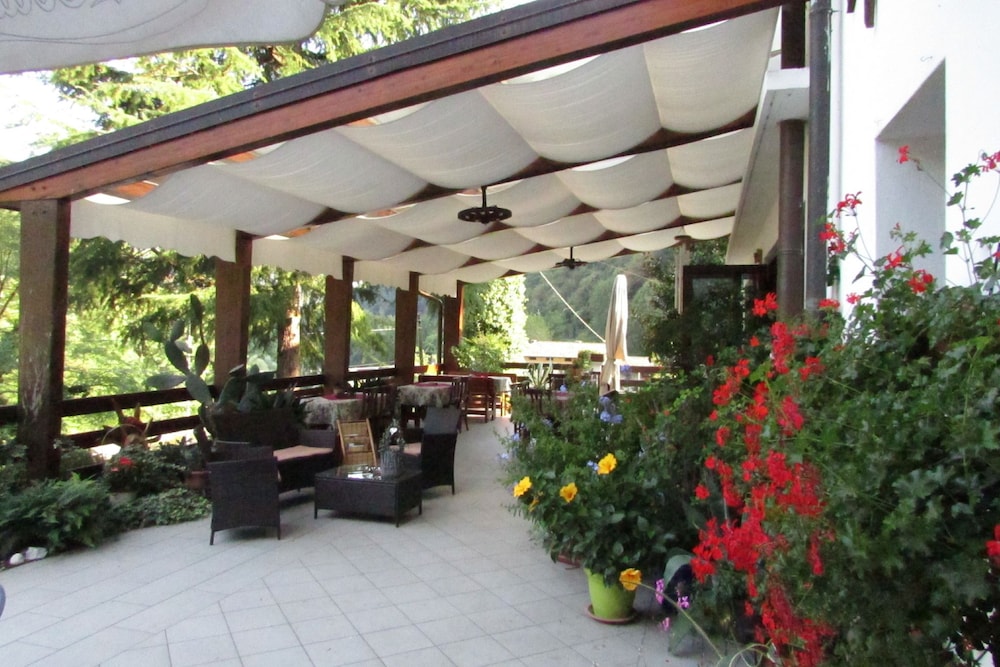 Savor the picturesque views from the terrace at Albergo Alla Trota, providing a serene backdrop for your stay.