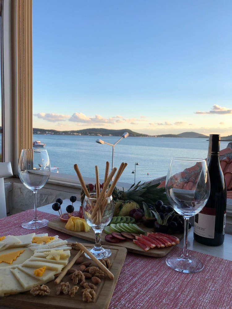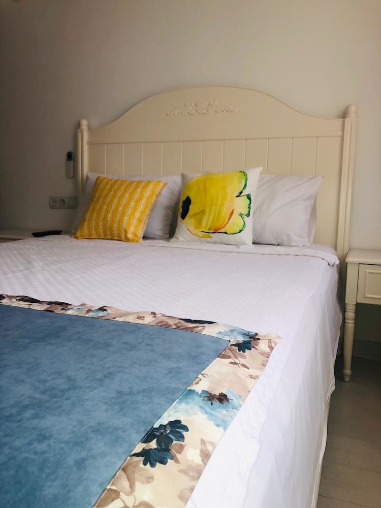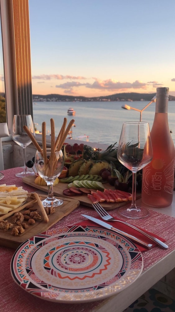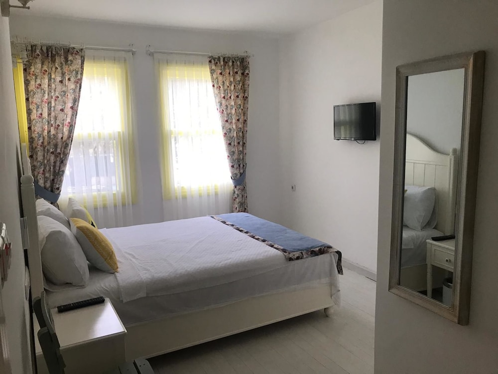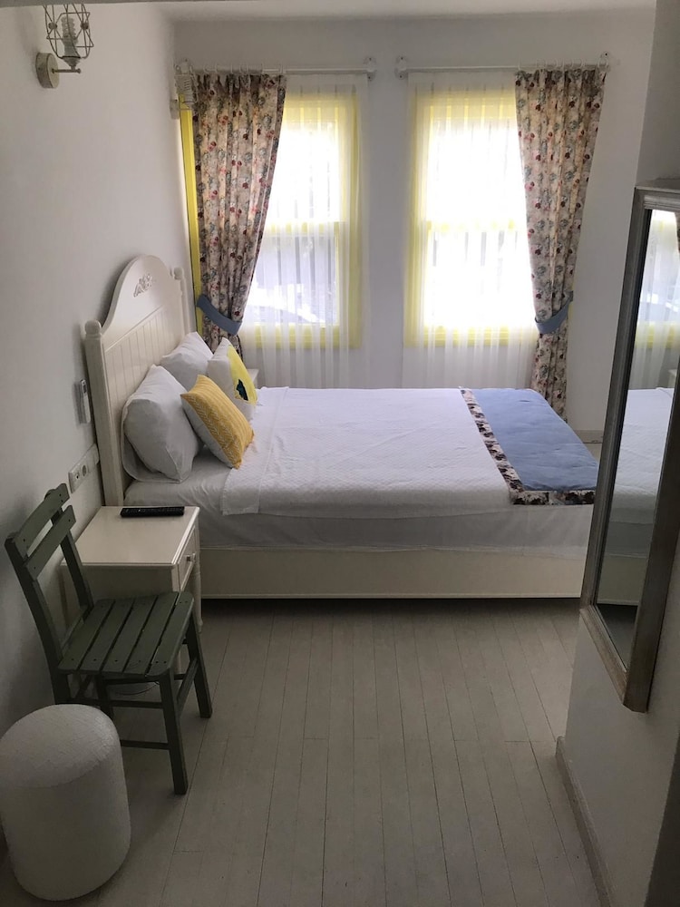Otel sahipleri olan hanımefendilere konaklamamız süresince bize gösterdikleri özel ilgi için minnettarız. İlk giriş anımızdan otelden çıkışımıza kadar en ufak bir problem dahi yaşamadık. Detaylara önem veren , çok titiz olan bir çiftiz ve otel bu sebeple bizi çok tatmin etti. Deniz manzaralı terasında yaptığımız kahvaltılar ve akşamları yapılan çay sohbetleri ziyaretimizi taçlandırdı. Otel adanın çok merkezi bir konumunda ve gece gündüz çok canlı olan bir bölgede. Gündüz saatlerinde araçlı olan kişiler otelin tam karşısındaki belediye park alanlarına arabalarını rahatlıkla park edebilirler ama hava karardıktan sonra ciddi bir park sorunu ile karşılaşabilirsiniz. Zira çok kalabalık oluyor.