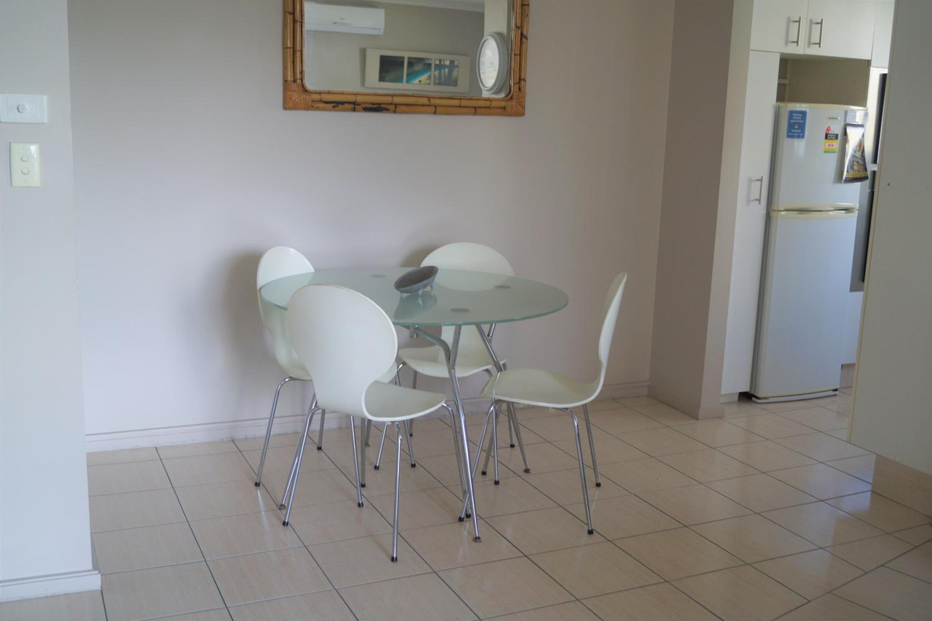 My room was aged in decor and furnishings, could do with an update. Glass coffee table in the middle of the lounge - very hazardous.