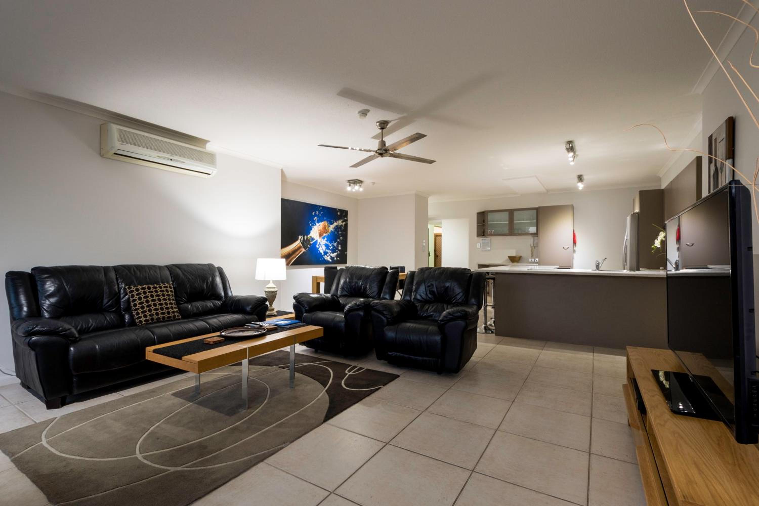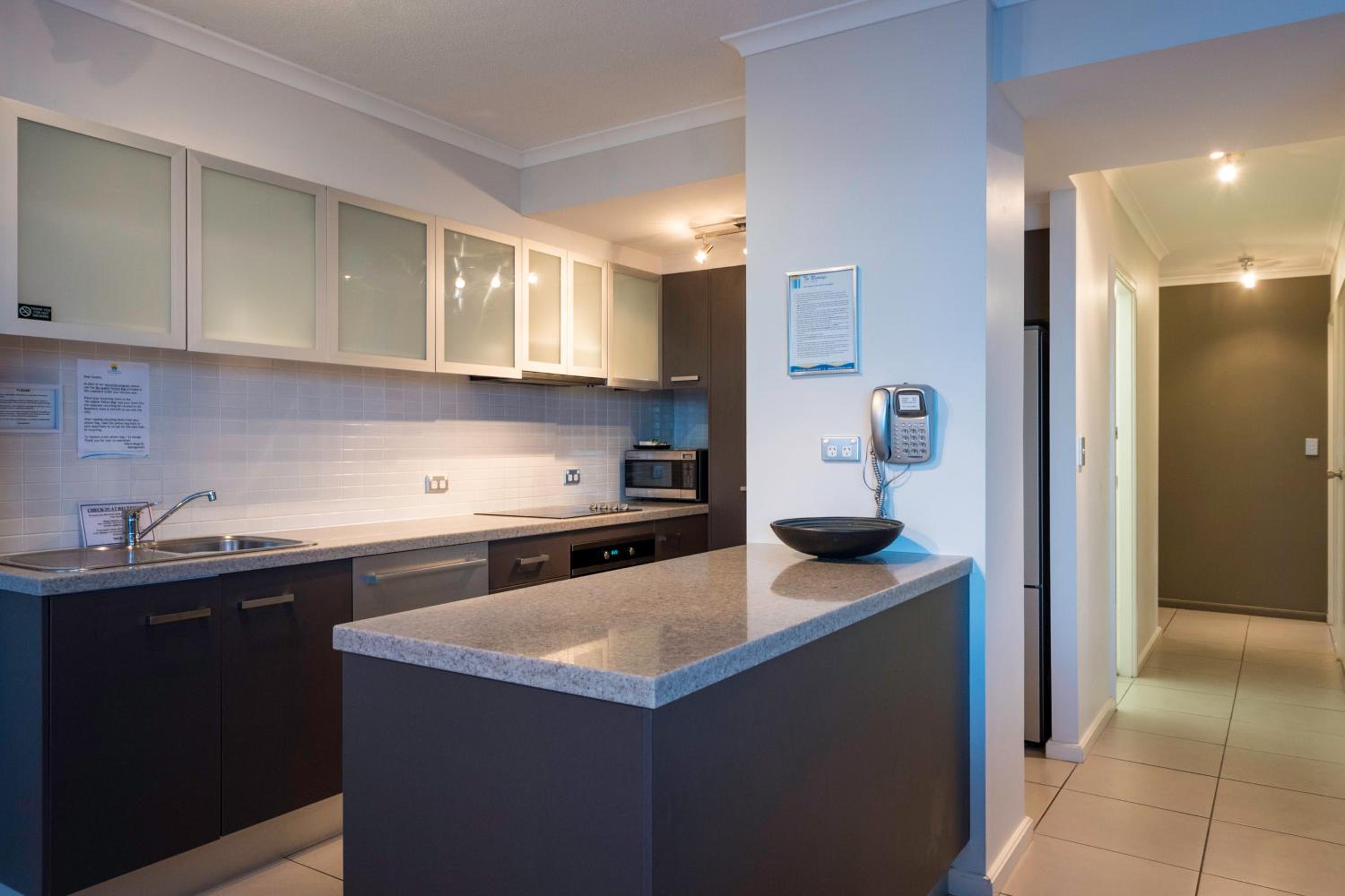 Enjoy the convenience of self-contained apartments offering stunning city or river views from your private balcony. Each apartment is equipped with free premium HD cable TV and a bathroom for every bedroom.