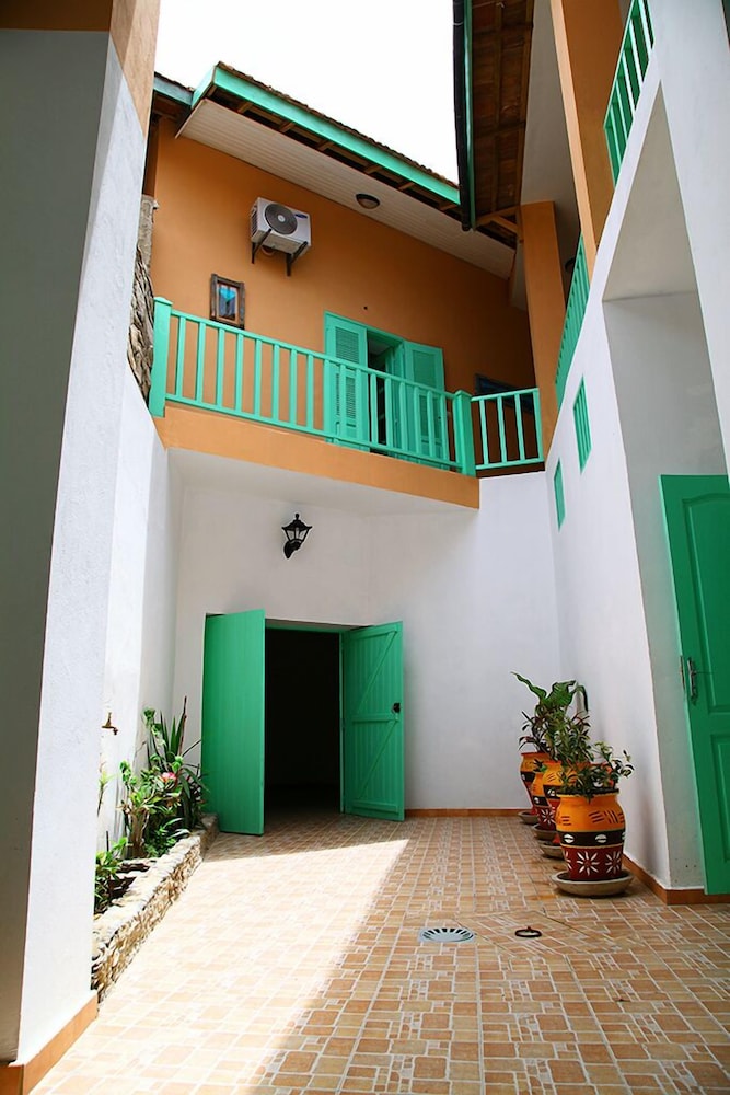 This is an expensive hotel by Senegalese standards and as such I expected better service and maintenance. We arrived hot and tired after a long travel day and had to wait to check in while the desk ckerk fiddled with the printer trying to photocopy my passport. The hotel itself is in a nice old building which has been beautifully restored. The room was a bit small but nicely furnished and decorated, with a beautiful bed and new sheets. However, both towel racks were broken as was the toilet paper holder, a bathroom light was burned out, and the heavy wooden sliding door to the bathroom was off its rollers so you had to pick it up and move it to close the door. The wifi was poor, and they served instant coffee with the (included) breakfast. You can get all that for a quarter the price anywhere in Senegal. The location was good, but Goree is small and anywhere is a good location. Goree Island itself was really nice and I highly recommend spending the night there. It's charming.