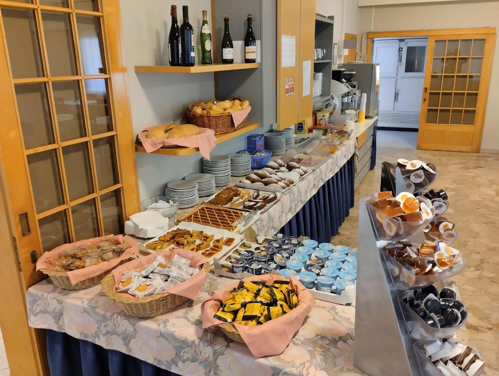 Start your day with a delicious breakfast spread including cold cuts, cheese, and freshly baked croissants. Indulge in national cuisine and Romagna specialties at our restaurant, and grab a quick snack or drink at the bar anytime.