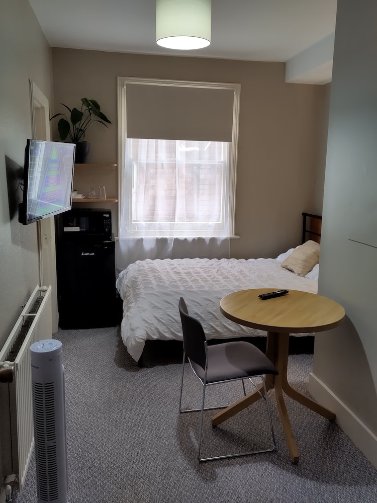 This is basic, great value for money accommodation tgg heats well located. Spotlessly clean, and had everything we needed and a bit more, too, including a microwave, dishes, cutlery and a mini-fridge. Bed was comfy, shower was good. Room was quiet. Free off-road parking. Hospitality tray was generous too. We chose the small double which was compact, but was great for what we needed. My only criticism was that there was no mirror over the desk/dressing table, but there was a mirror that you could stand up and use. Friendly greeting on arrival. Location was great too. About 15 minute walk to Reading City Centre as bd less than that to the train station. We’d definitely stay again.