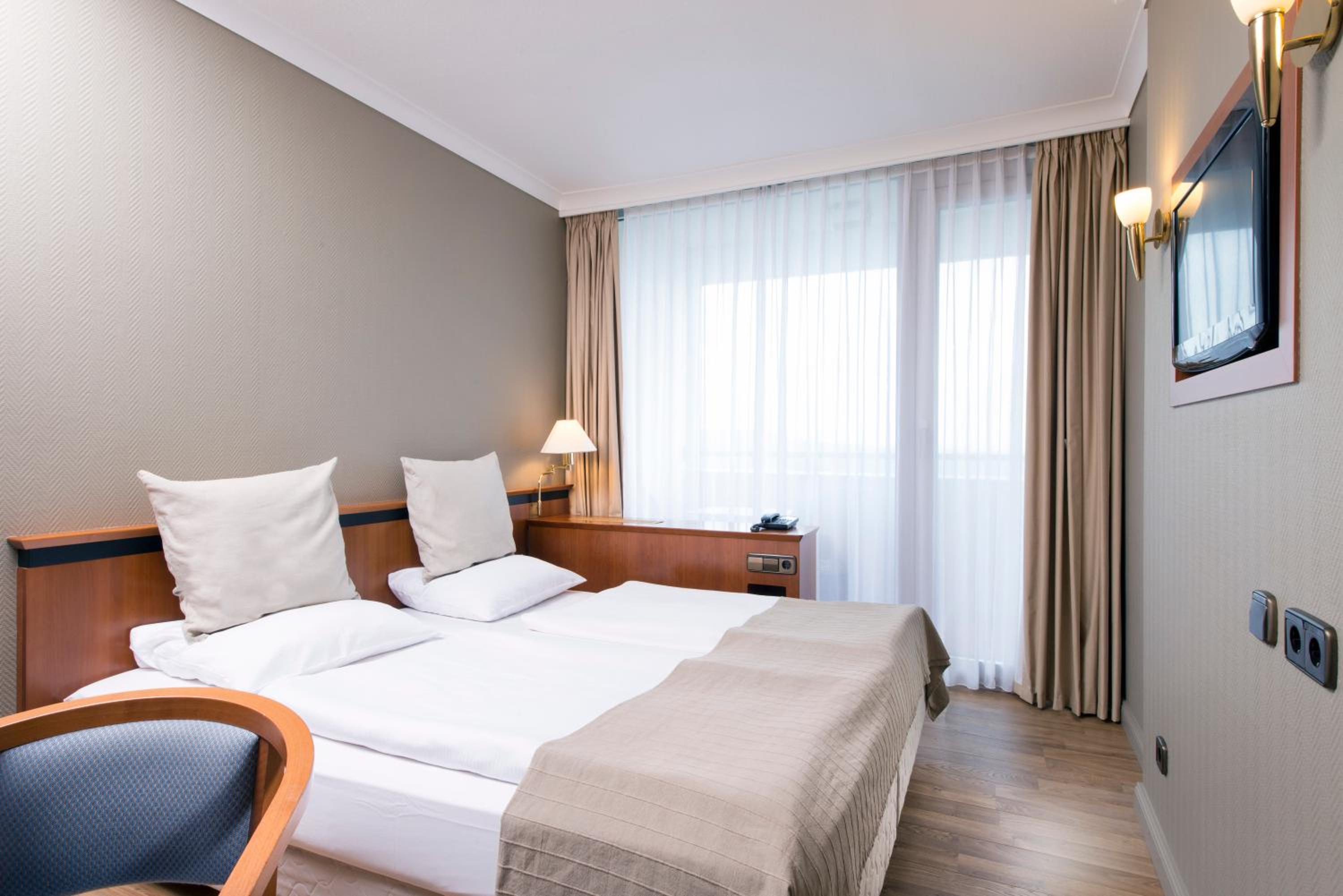 Indulge in the serene ambiance of the Wyndham Garden Lahnstein's quiet rooms, each offering a flat-screen TV, a safe, and breathtaking views of the Rhine and Lahn valleys. Step out onto the balcony from the third floor rooms and immerse yourself in the natural beauty that surrounds you.