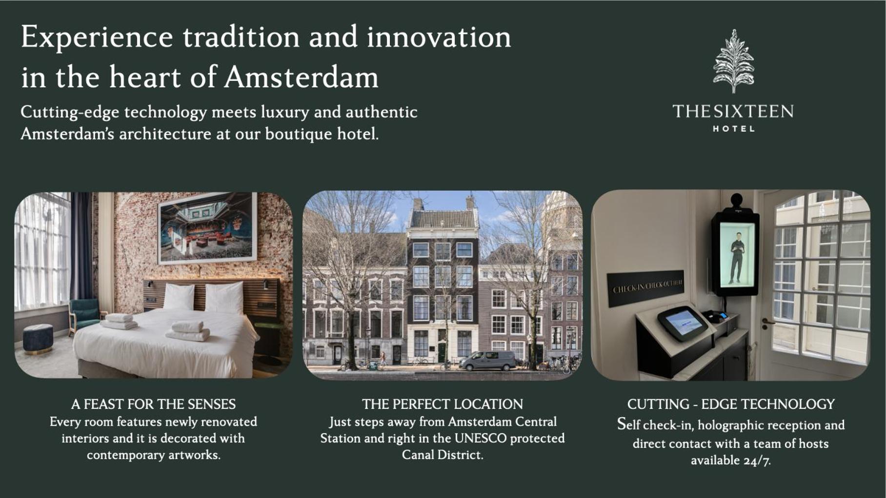 Located just a short stroll from Amsterdam Central Station, The Sixteen provides easy access to Dam Square, the Royal Palace, and a variety of dining options and transportation hubs for a convenient exploration of the city.