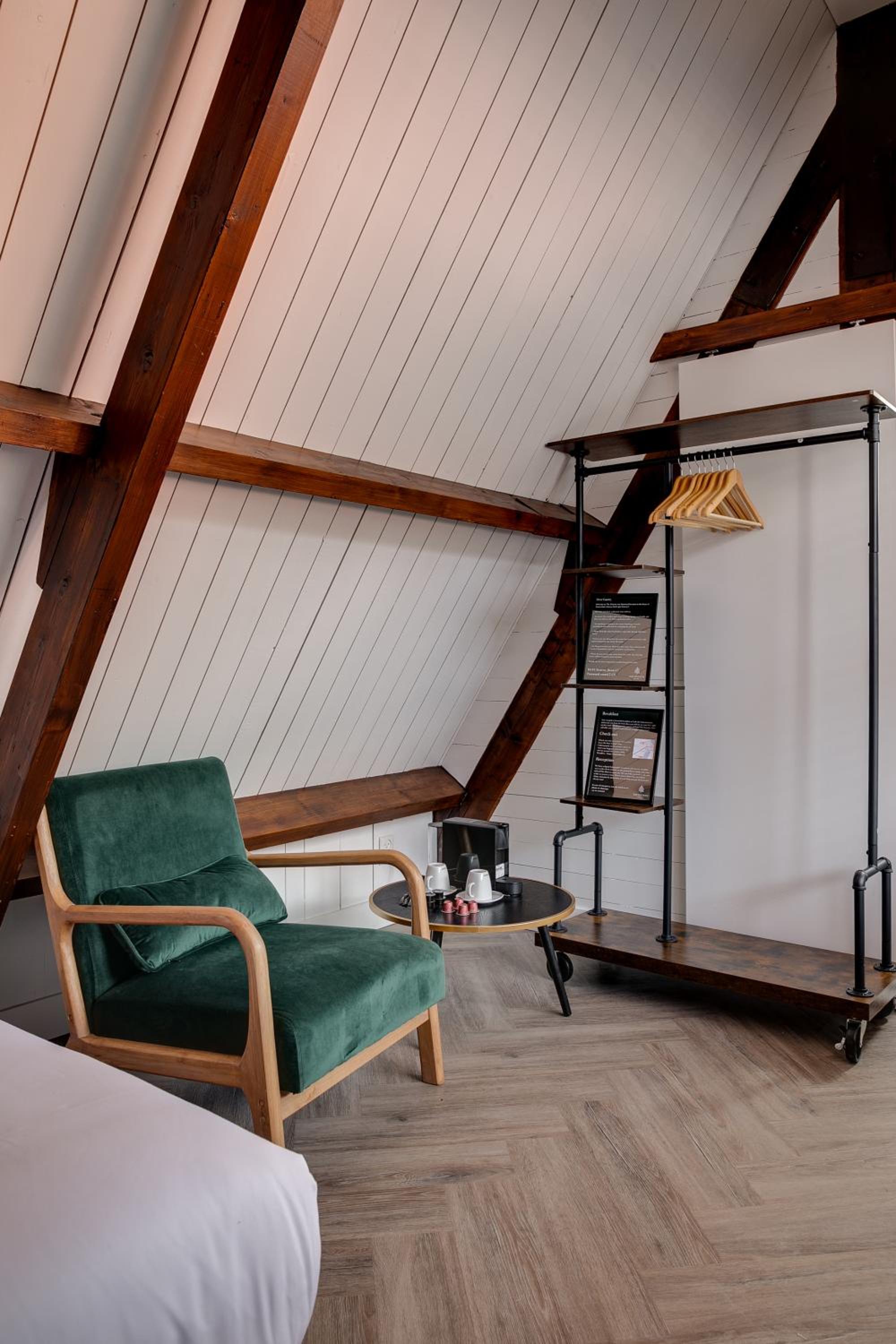 But the room was pretty awful. I had an attic room which was accessible by four flights of typical narrow and curvy Dutch stairs, lucky for me I only had a backpack because getting a suitcase of any size up there would have been next to impossible. But the room itself was not clean, really dusty, dirty floors, windows, etc. There was no bedside light at all, the only light available was the bright overhead light. The water in the bathroom sink was problematic, only coming out in short bursts as if there was air in the tubes. No plugs anywhere useful - no place in the bathroom to plug in a hair dryer and no mirror in the room if you could find a plug there. No TV channels - you could only log in to your personal streaming service (from what I could tell). And the bed had an old lumpy mattress. I'm a very frequent traveler to Amsterdam, and this was at the lowest end of anyplace I've stayed.
