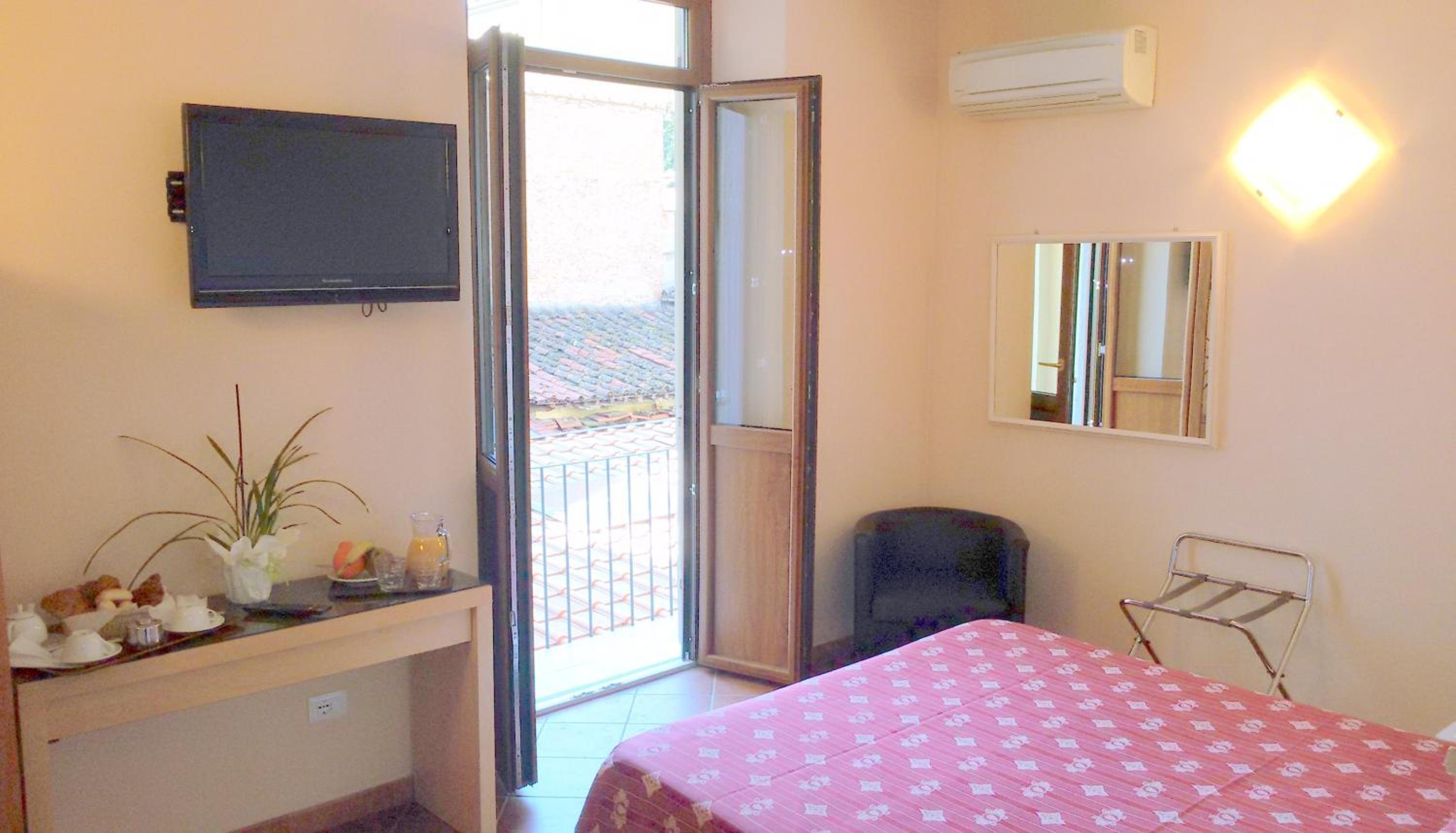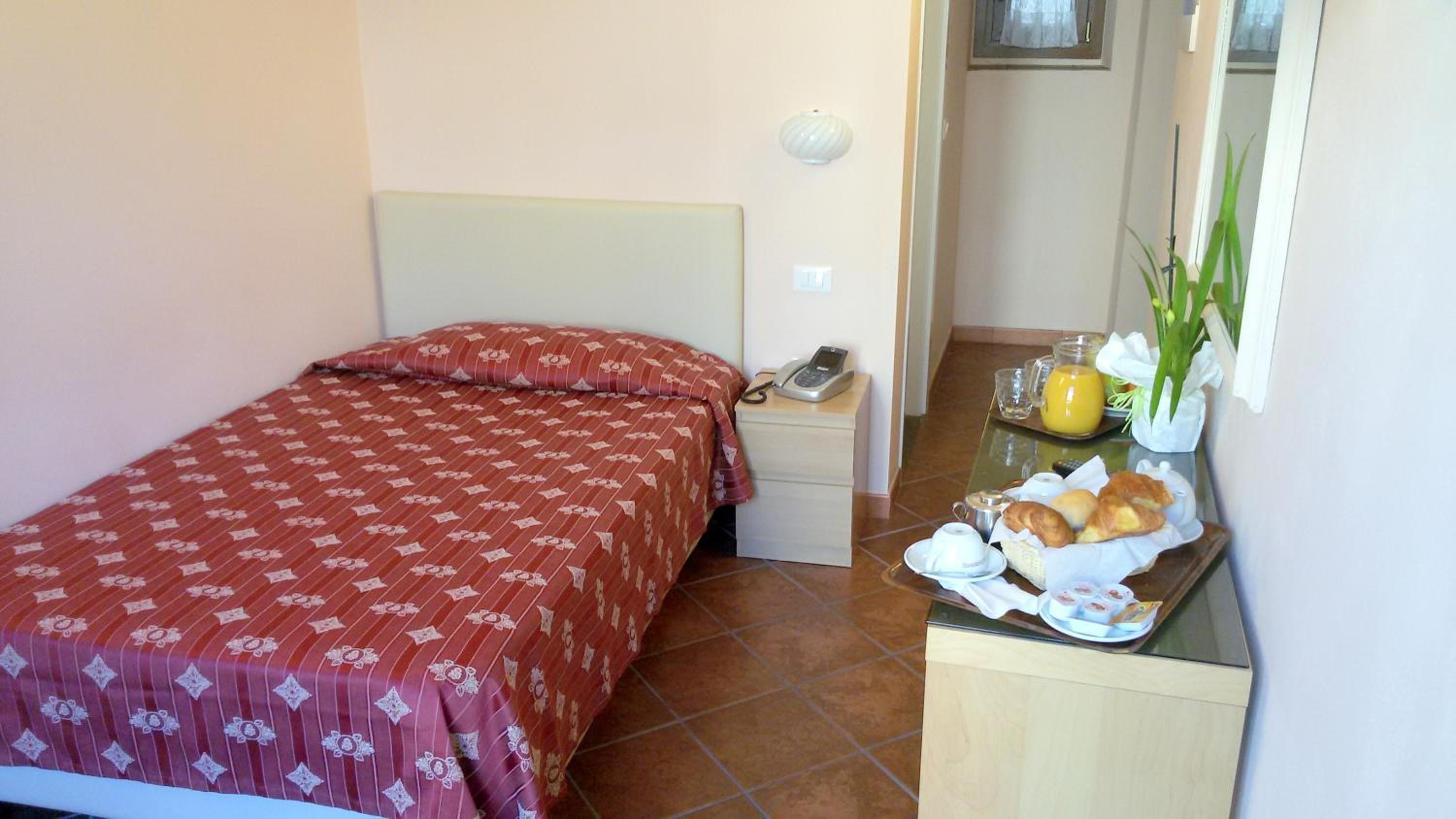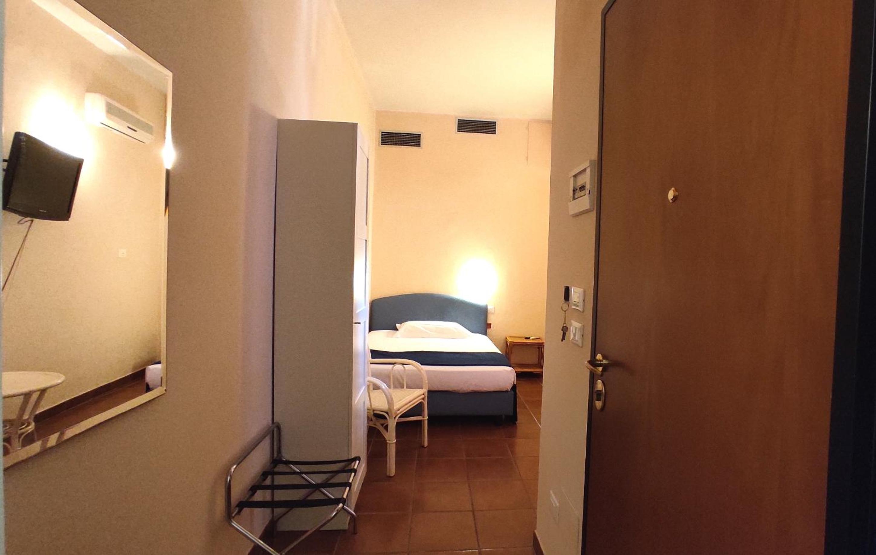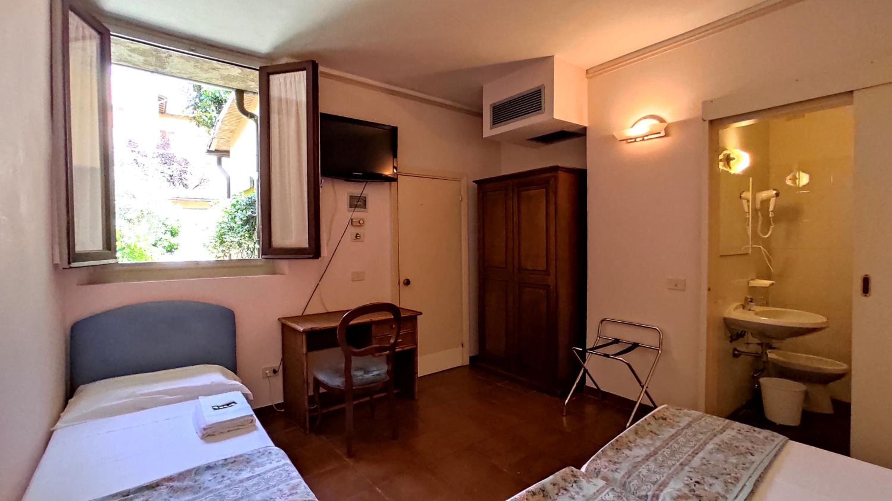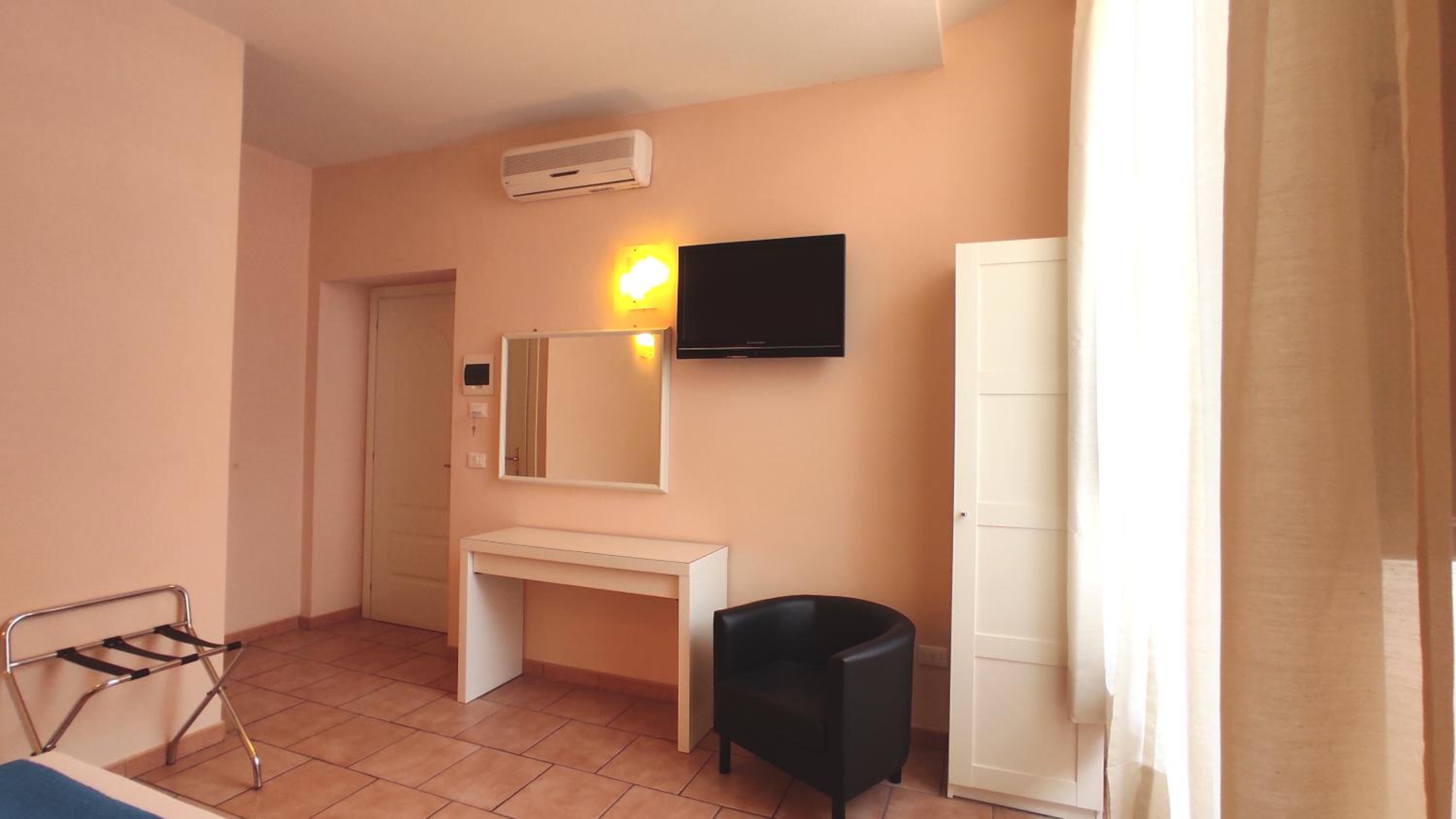 The staff were very friendly, polite and numerous. Breakfast was great. But the room and bathroom were in poor condition (I attached a picture of the walls) and smelled very bad, making me feel nauseous all night. The room was not soundproofed at all and was lit only by a large lamp that didn't work and a small, dim light. There were no amenities, except an immense TV, not even a glass for water. But above all, I didn't feel safe during the night because the door opened directly onto the courtyard. The old curtains didn't even cover the windows. I really don't recommend it.