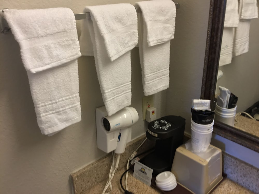 When I got to my room, which faces south and is on an exterior corridor along with all of the rooms, I entered to find out the air conditioner was off. Now this was a very hot, sunny day, so as you might imagine, the room felt like an oven. Thankfully, the air conditioner worked quickly. But when it's that hot out, I'd expect more from a hotel that gets 4.1 stars on Google.