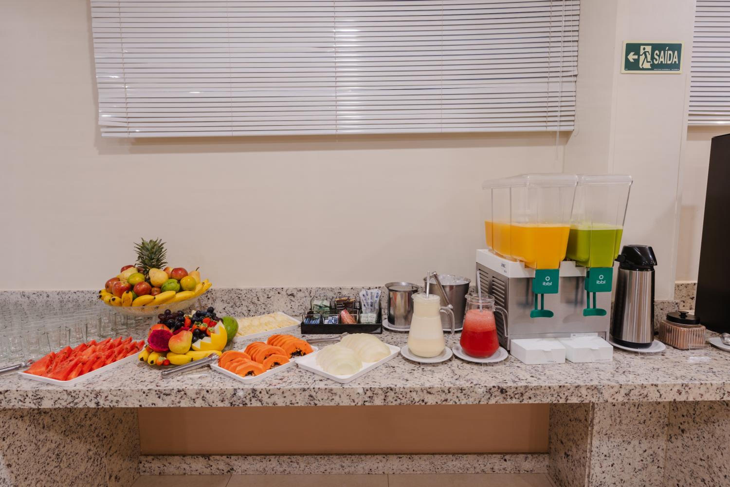 Enjoy access to a well-equipped gym, a cozy bar, and a delicious buffet breakfast during your stay at Hotel Caiuá Express. Additionally, benefit from the 24-hour reception for any assistance you may require.