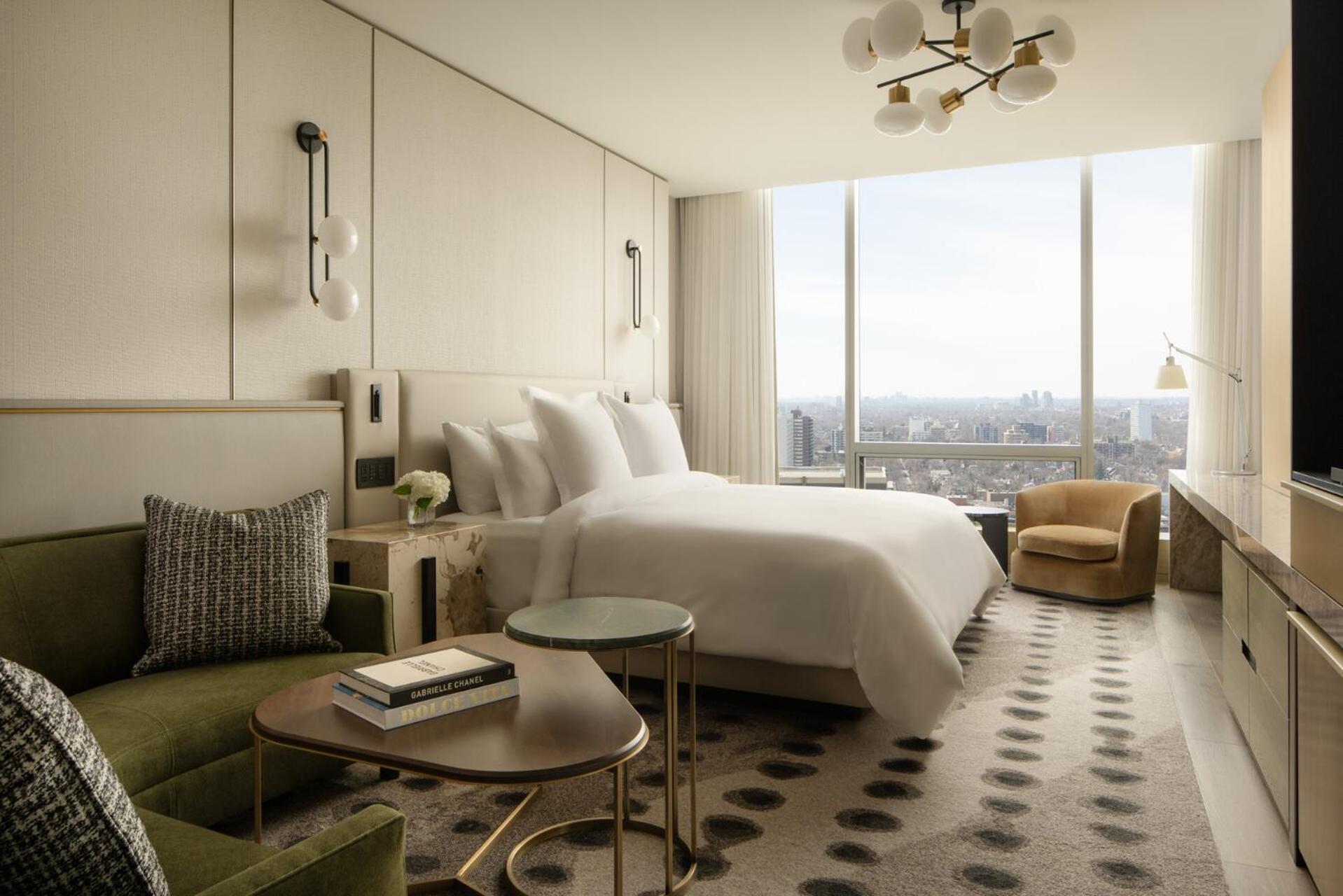 Five-star luxury in the heart of Yorkville. Renovated in 2024, the rooms are fresh and elegant, with excellent beds and bedding. Bathrooms are sleek, though amenities are limited for a hotel of this caliber.