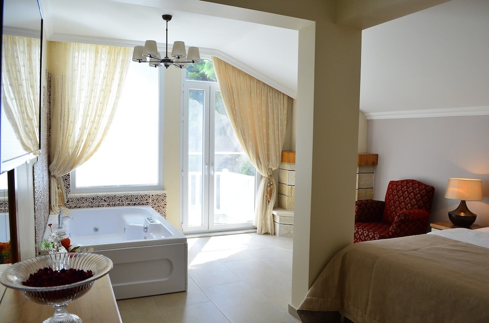 Otel gayet güzel, odalar ferahtı. Fakat şöminenin bacasından dolayı sanırım duman odaya doğru geldi bir çok kez. Ayrıca şömine odununu yakan arkadaşın maske takmayıp odamıza gelmesi maalesef bizi endişelendirdi. Şöminenin kesinlikle daha iyi olmasını beklerdik ama değildi. Yatak rahat değildi. Jakuzi ise harikaydı. Merve hanim gayet ilgiliydi.