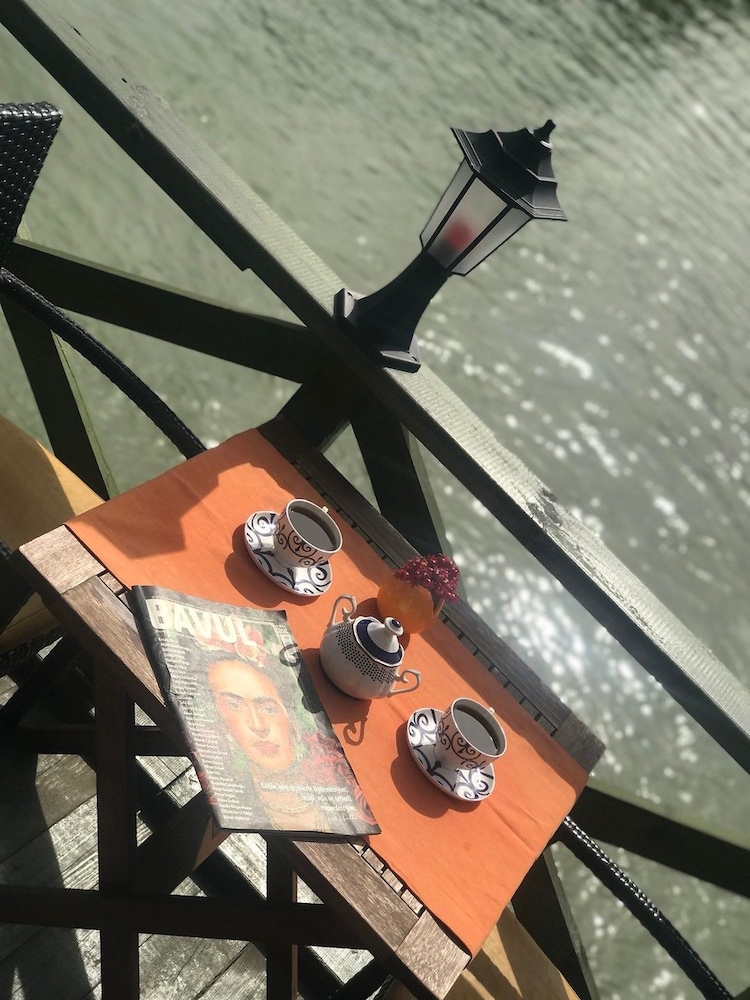 Genel olarak hoş dekore edilmiş ve samimi bir yer . Odaların ufak tefek bakımlara ihtiyacı olması harici herhangi bir sorun yoktu . Kahvaltı sanki dışarıda bir restoranda serpme kahvaltı yapıyormuşşunuz gibi güzeldi . Sadece geçiştirmek adına verilen bir kahvaltı değildi . Özellikle sahiplerinin yaklaşımları samimi ve içtendi . İskele ve restoran gerçekten her açıdan ince düşünülerek güzel tasarlanmış. Keyifli geçen bir konaklama oldu . Hizmetinden aşırı memnun kaldığımız güzel bir tatil oldu .