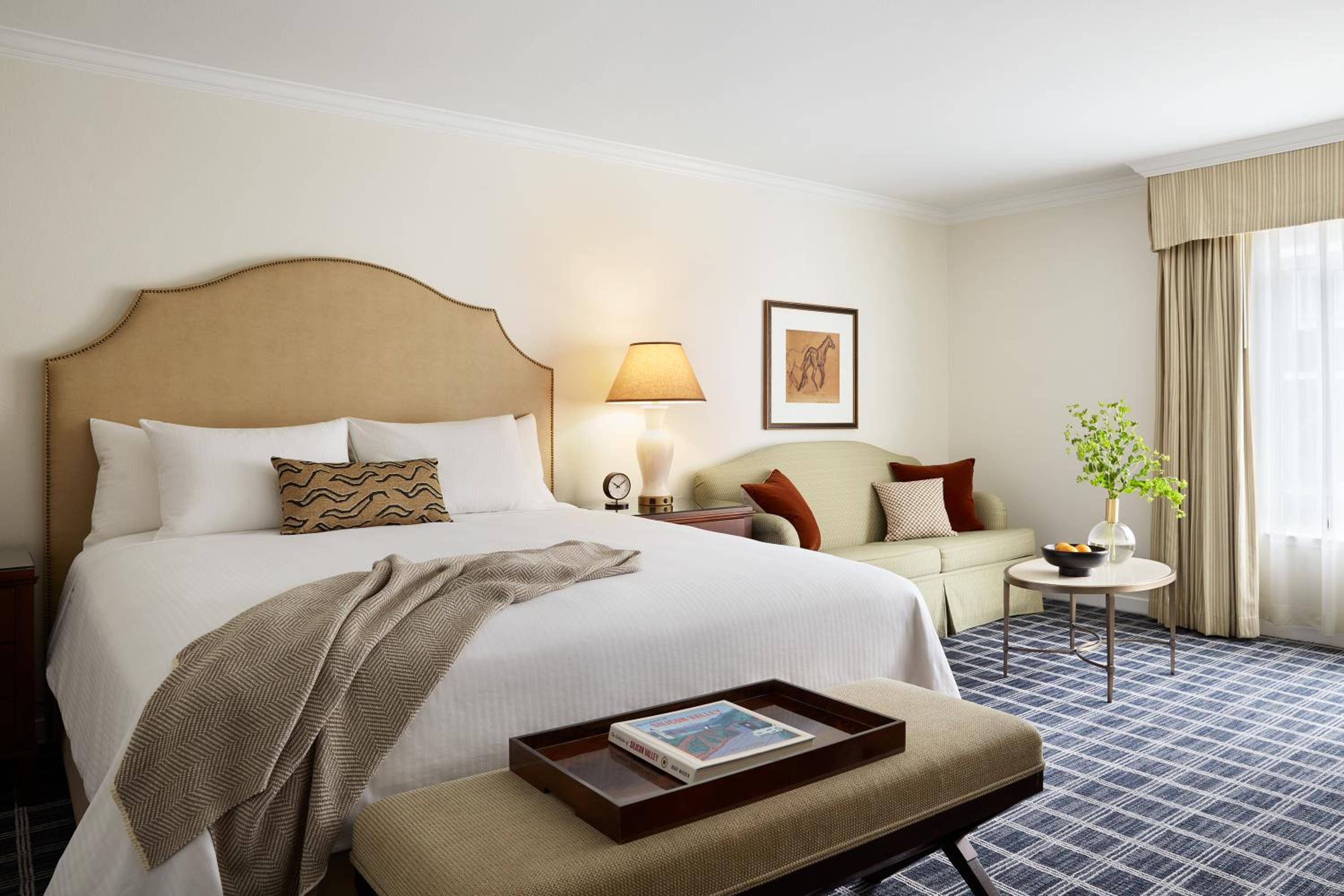 Across from Stanford Shopping Center and near the university - all walkable - the hotel sits in one of those parts of the Bay Area where everything feels tidy, mature, and well considered. The property emphasizes thoughtful personalized service, recent renovations, and Menlo Tavern as its in-house dining anchor.