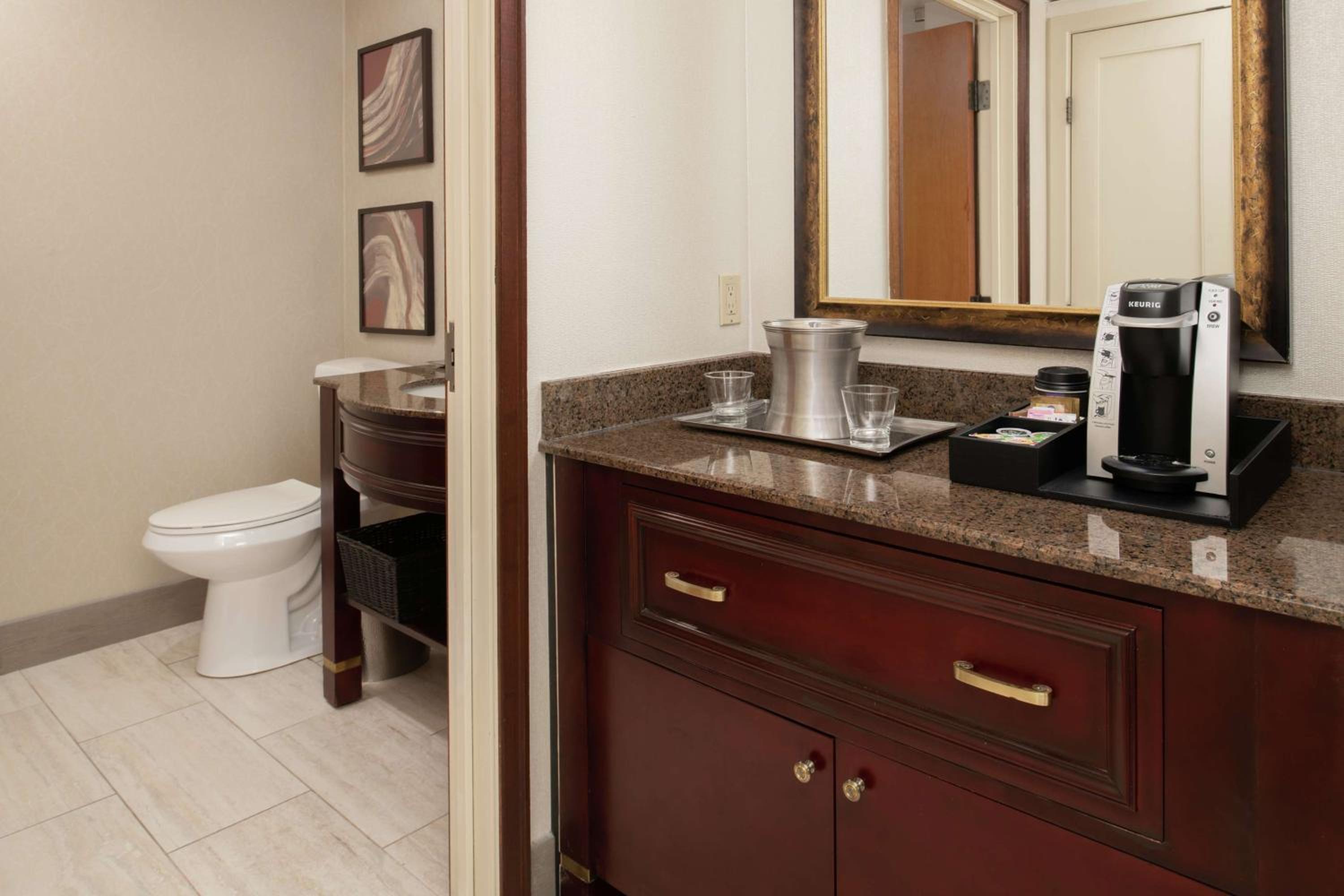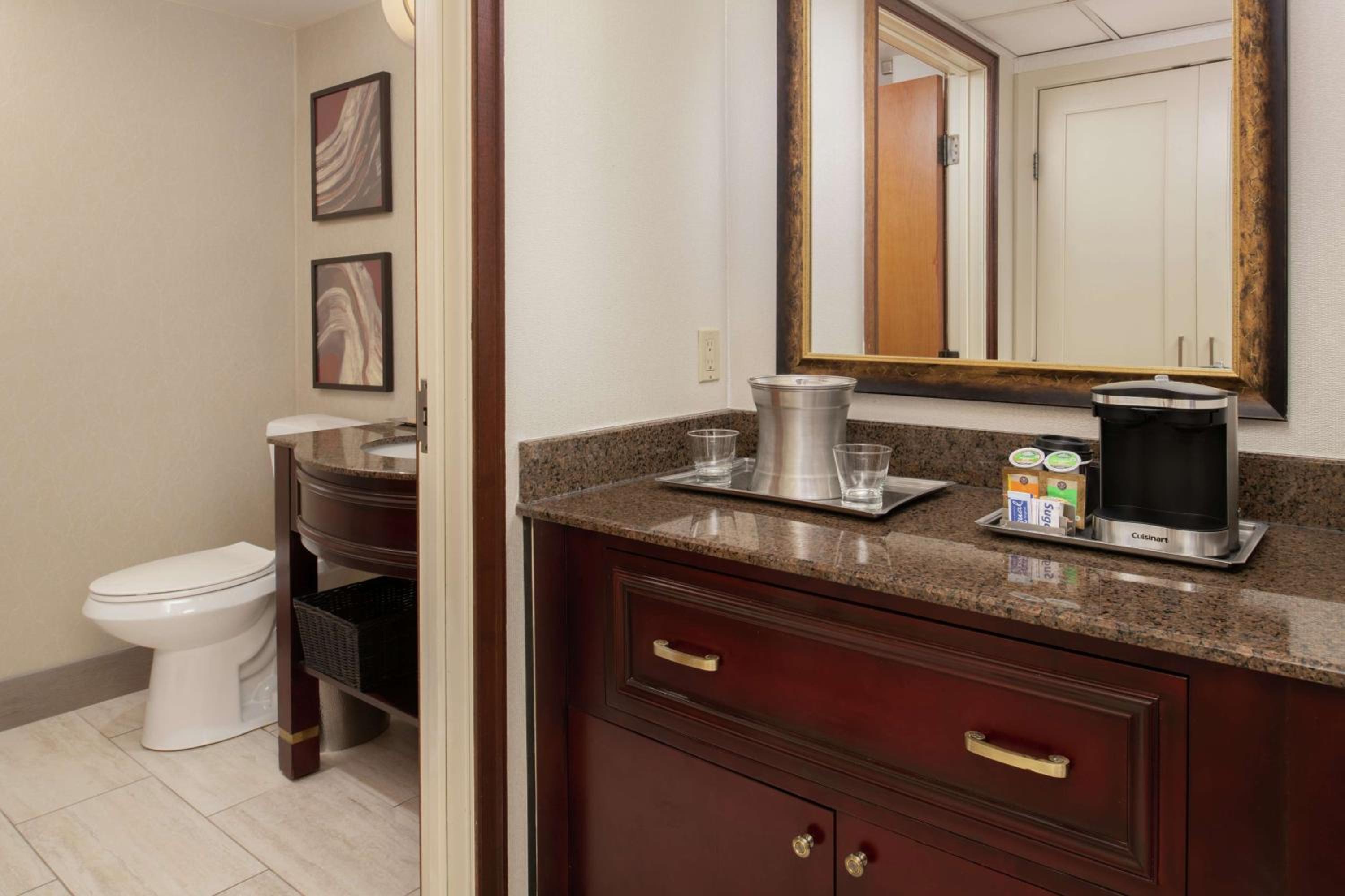 Guests at the Bellevue Hilton can indulge in delicious meals at Solarium Kitchen and Bar, or grab a coffee at the on-site coffee bar. With well-appointed guestrooms equipped with coffeemakers and high-speed internet access, every stay promises comfort and convenience.