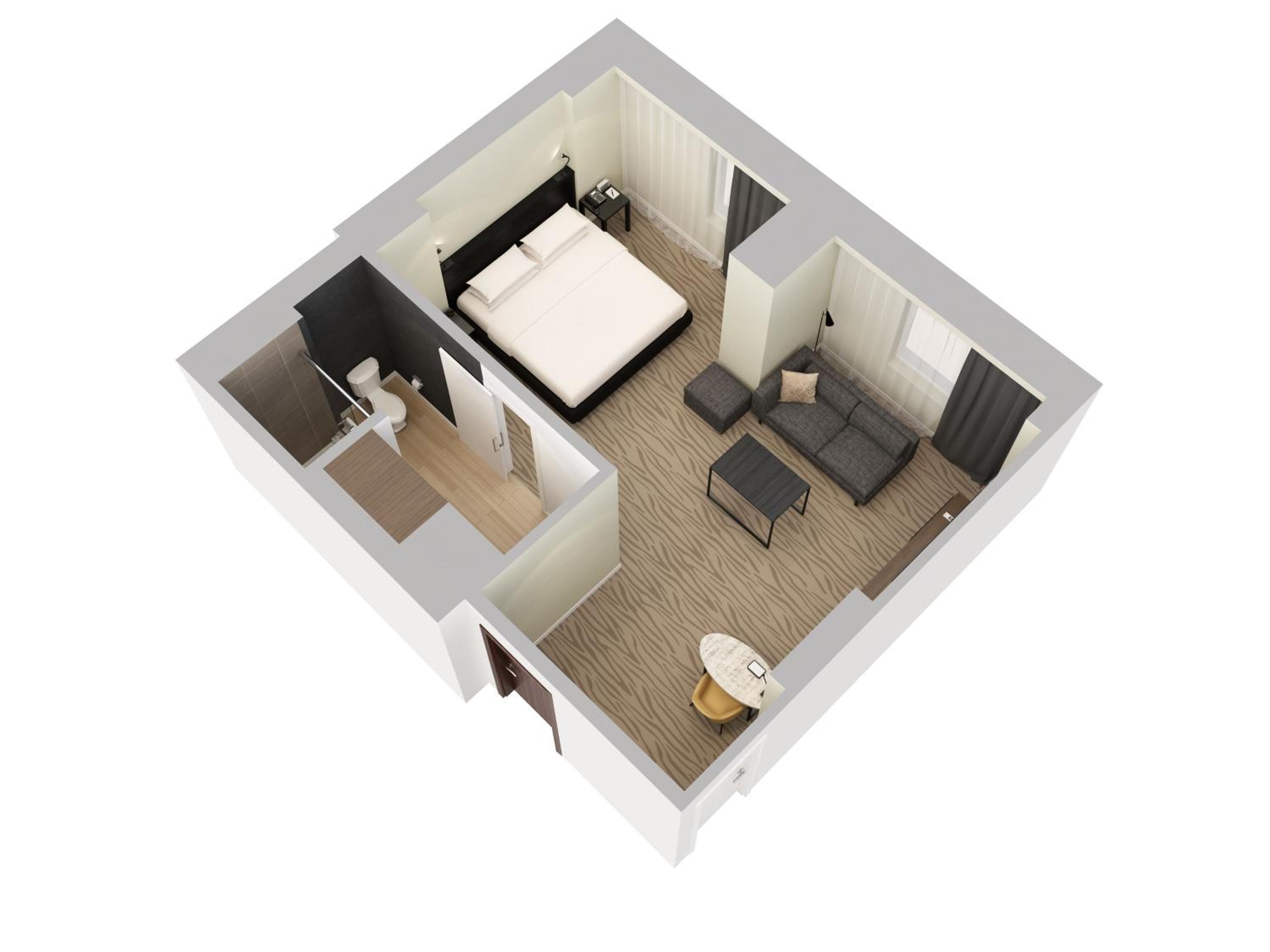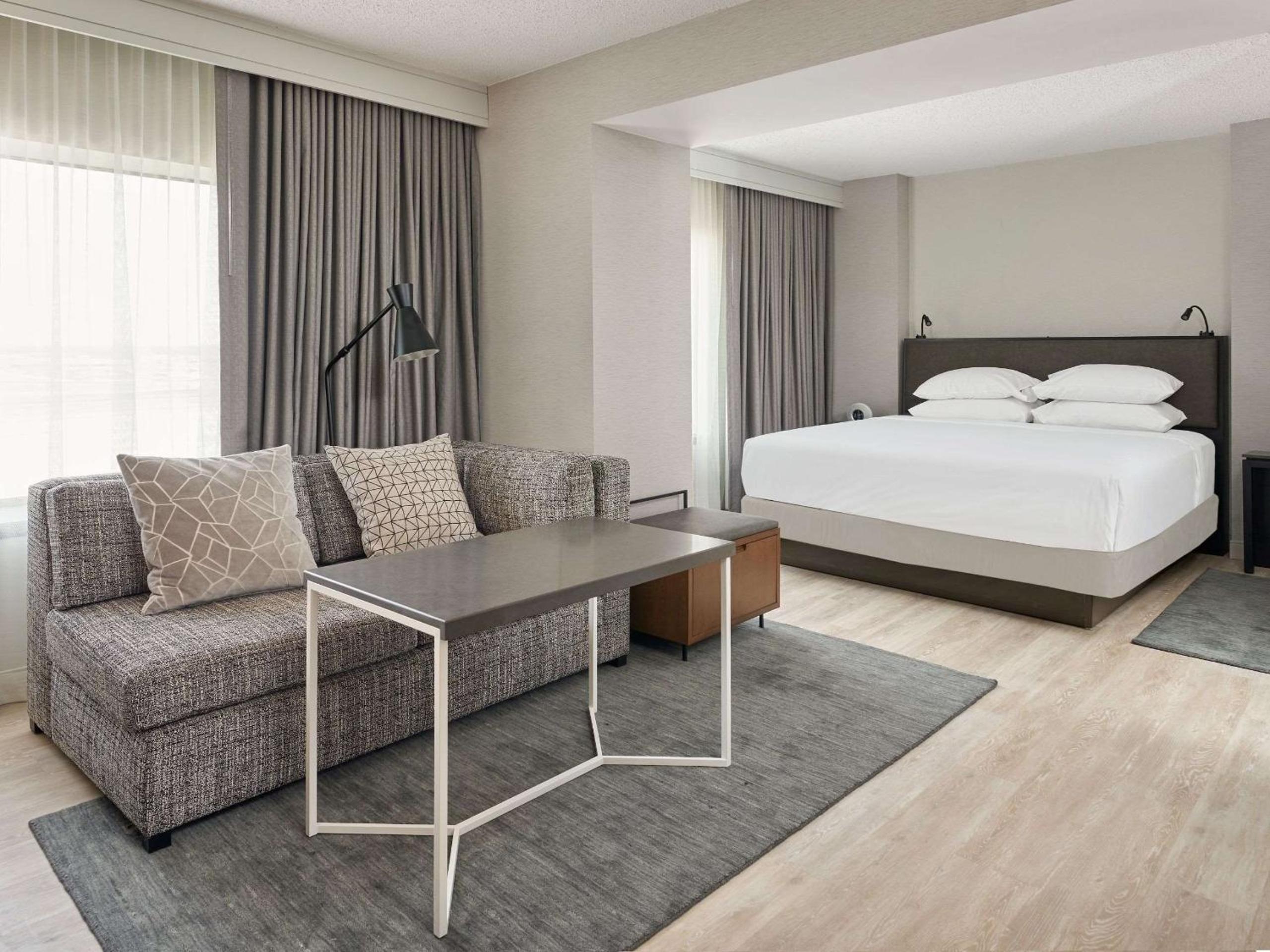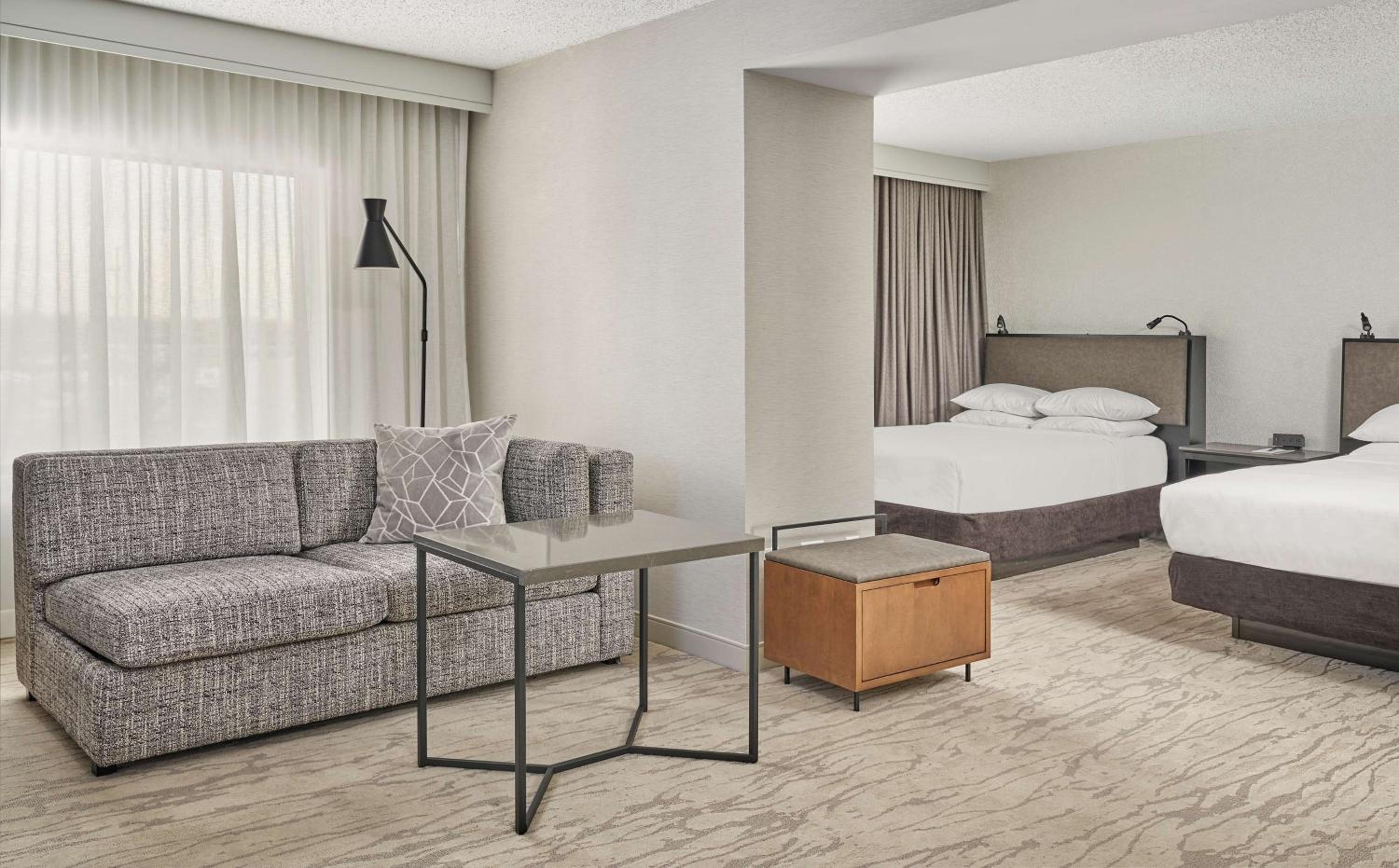 Comfort and Style: Enjoy pillow-top mattresses, separate sitting areas, and workspaces in our guestrooms.