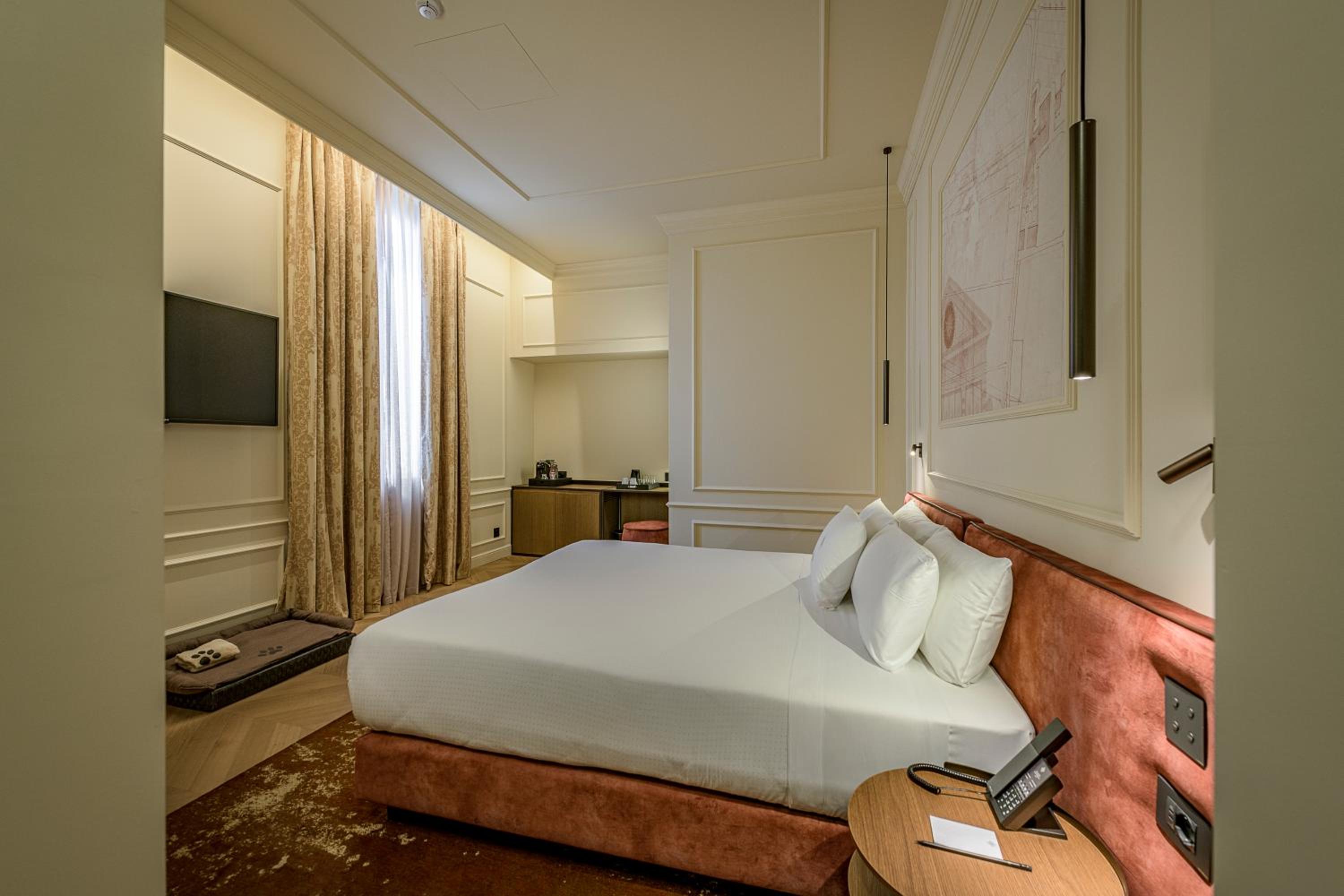 Relax in the tranquil garden surroundings of the hotel, just a short stroll from Santa Maria Novella Train Station. Enjoy the comfort of soft feather quilts, Egyptian cotton linens, and the option of rooms with parquet floors and spa baths.