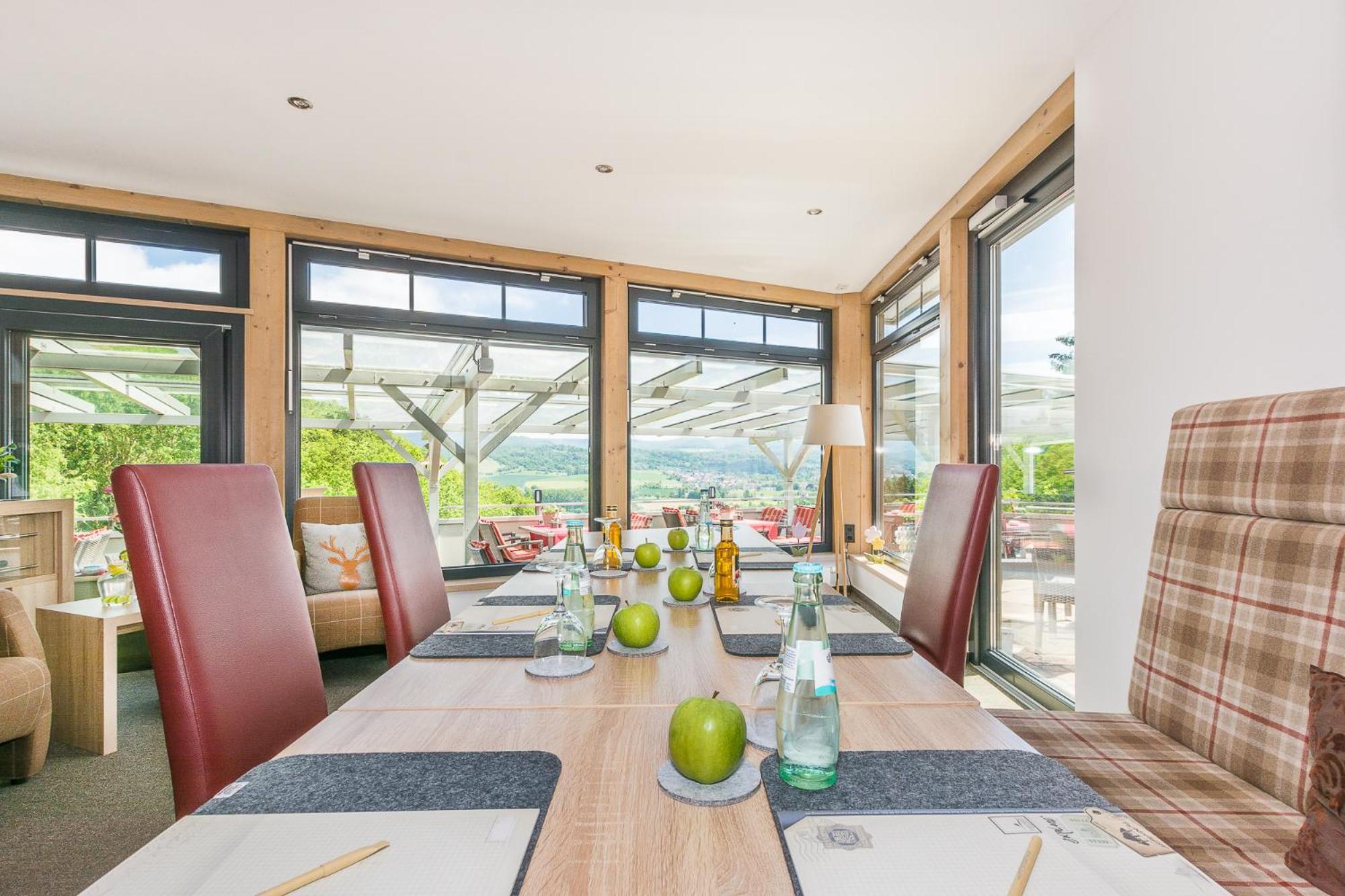 Experience a picturesque stay at Romantik Hotel Ahrenberg, where you can enjoy breathtaking views of the Werra Valley from our spacious sun terrace. Our bright rooms with modern amenities offer a comfortable retreat, complemented by hearty regional cuisine made from fresh, local ingredients. Indulge in relaxation at our spa area, complete with a sauna, steam room, and peaceful relaxation space. Conveniently located in the heart of Germany, with easy access to major highways, your perfect getaway awaits at Romantik Hotel Ahrenberg. Book now and immerse yourself in tranquility and luxury.