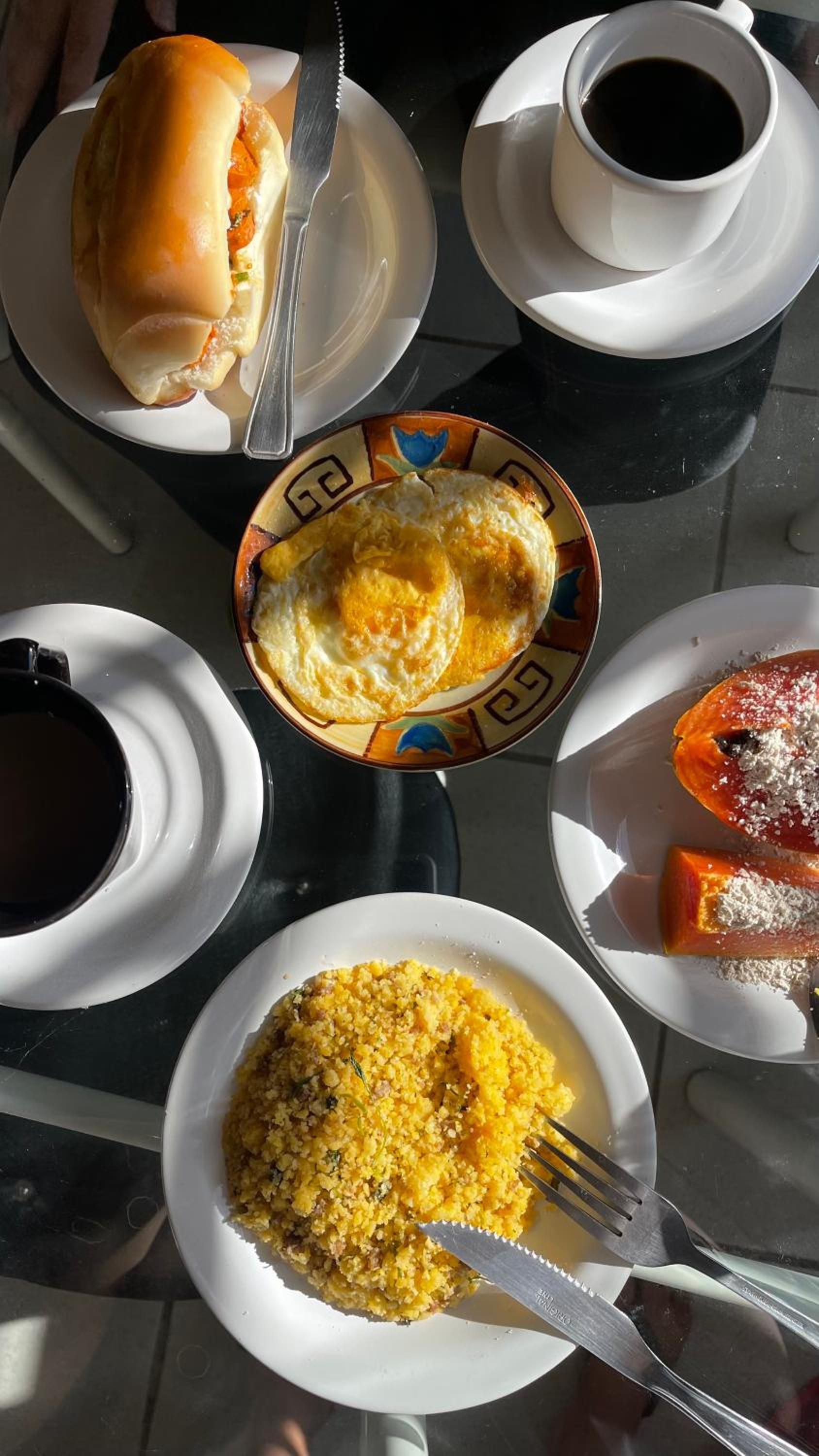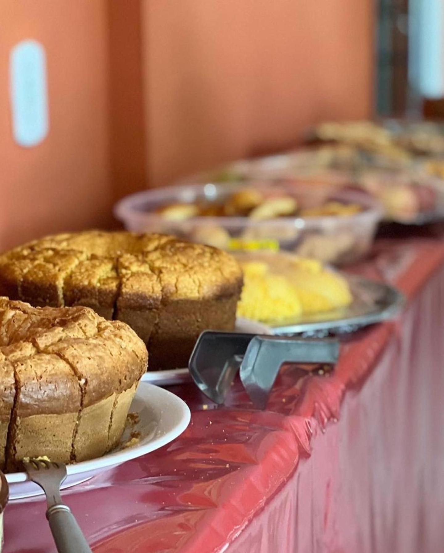 O cafe da manhã é simples com o básico necessário. Duas opções de frutas, pão, queijo e presunto (um dia não houve), cuscuz, salsicha e dois tipos de bolos... e lógico cafe com leite e dois sucos...simples mas nada a contestar...