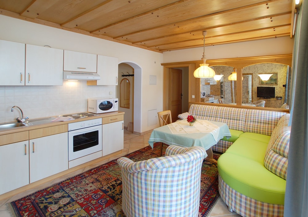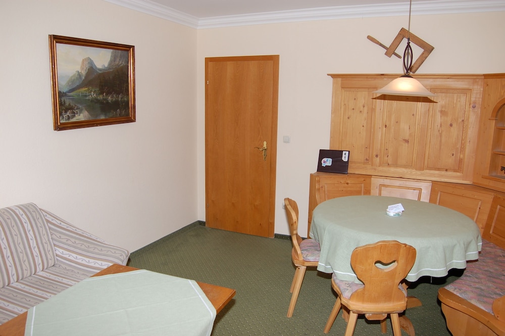 I stay in a 2 bedroom apartment. Very big and very clean. The kitchen has everything you need. Is 5 munutes by car from berchtesgaden. So I think you should have a car to be there, otherwise is better to stay in berchtesgaden.