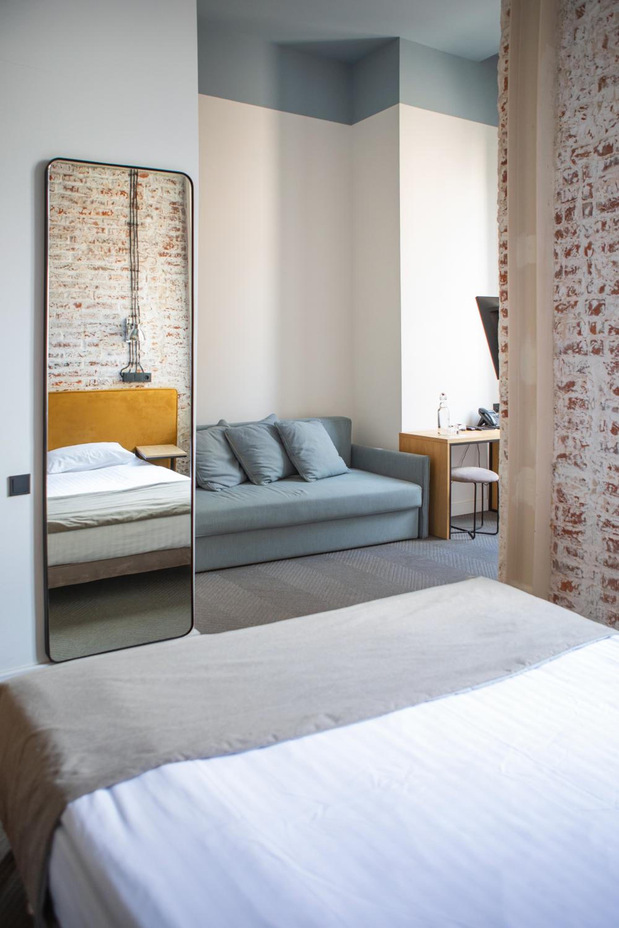 Стильний готель в центрі, але на тихій вулиці, без машин. В номері чисто, хоча сама кімната невелика. В нас був полу люкс з диваном. Було тіснувато, але ми майже не перебували в номері. Сніданок смачний на затишній терасі. Капці, рушники, халати - все є.