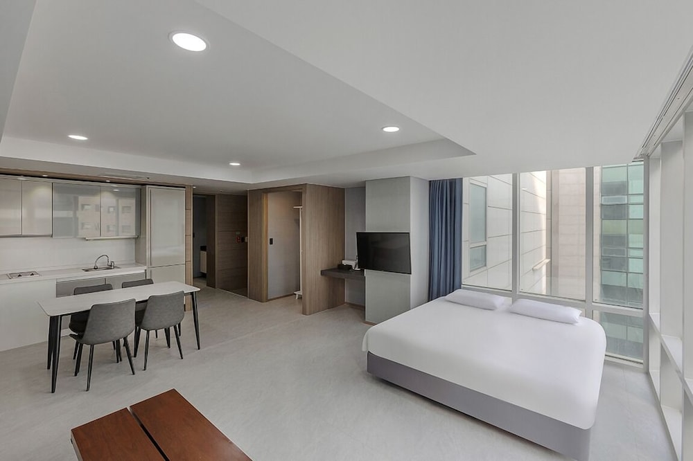 Room looked way better in photos than in real life. The rooms were too hot, the air conditioning units are way too small for the rooms. The suite was very large, and the view was great, but the whole place smelled like mold. The towels we were given were only hand towels and they smelled like cat pee. No laundry service, which is really appalling for a hotel to not even offer a paid service to guests. Maybe there was but the staff didn't even seem to care what we were asking for. The whole place felt like they didn't want us there. I would not stay in Hauendae again. It is so far from everything in Busan. Better to stay in Gwangalli nowadays.