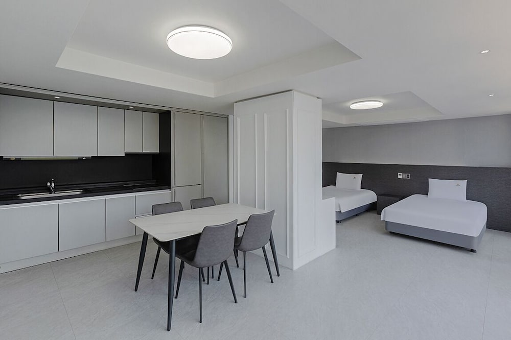 This property is conveniently located adjacent to the beach, subway station, traditional market, restaurants, coffee shops, karaokes, coin laundry, bakeries, convenient stores, and anything you will need for your trip. They do not have any guest laundry machine but hold your luggage for free after checking out. I recommend you try the rising bakery & cafe called "Feely Meal" baking the best Eastern European chimney/spit bread, Trdlo (plain, cinnamon sugar, or chocolate cream) in Busan taking the subway at Haeundae Station (one-way, 1,300 won)
