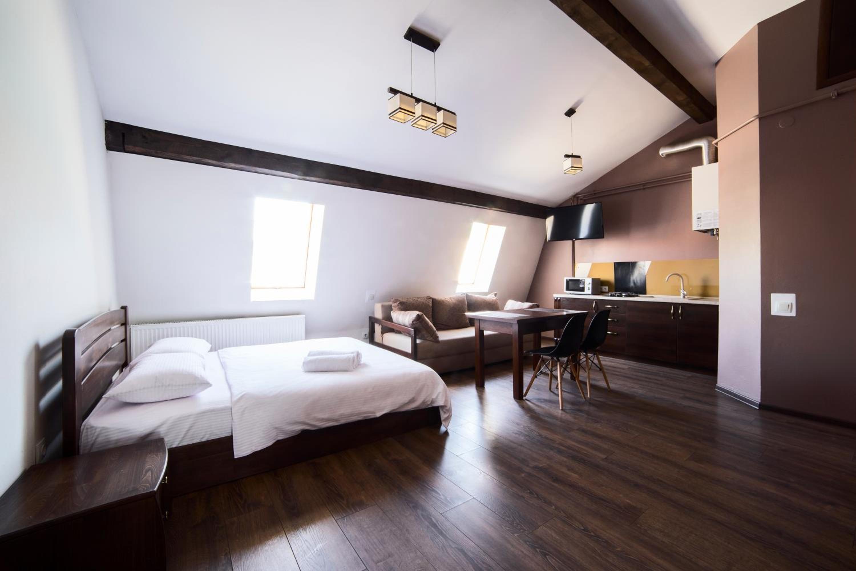 Цей невеличкий апарт-готель став знахідкою для нас у Львові! Локація просто супер, сам центр, поруч багато ресторанів, кафе, музеїв і місць для прогулянок. Номер був дуже чистенький і затишний. Власна кухня та санвузол зробили проживання максимально комфортним. Ліжка зручні, виспались ідеально! Персонал привітний і завжди готовий допомогти. Також, зручно що поруч є де запаркувати авто. Це стало нашим улюбленим місцем для розміщення у Львові👍Обов’язково повернемося ще!