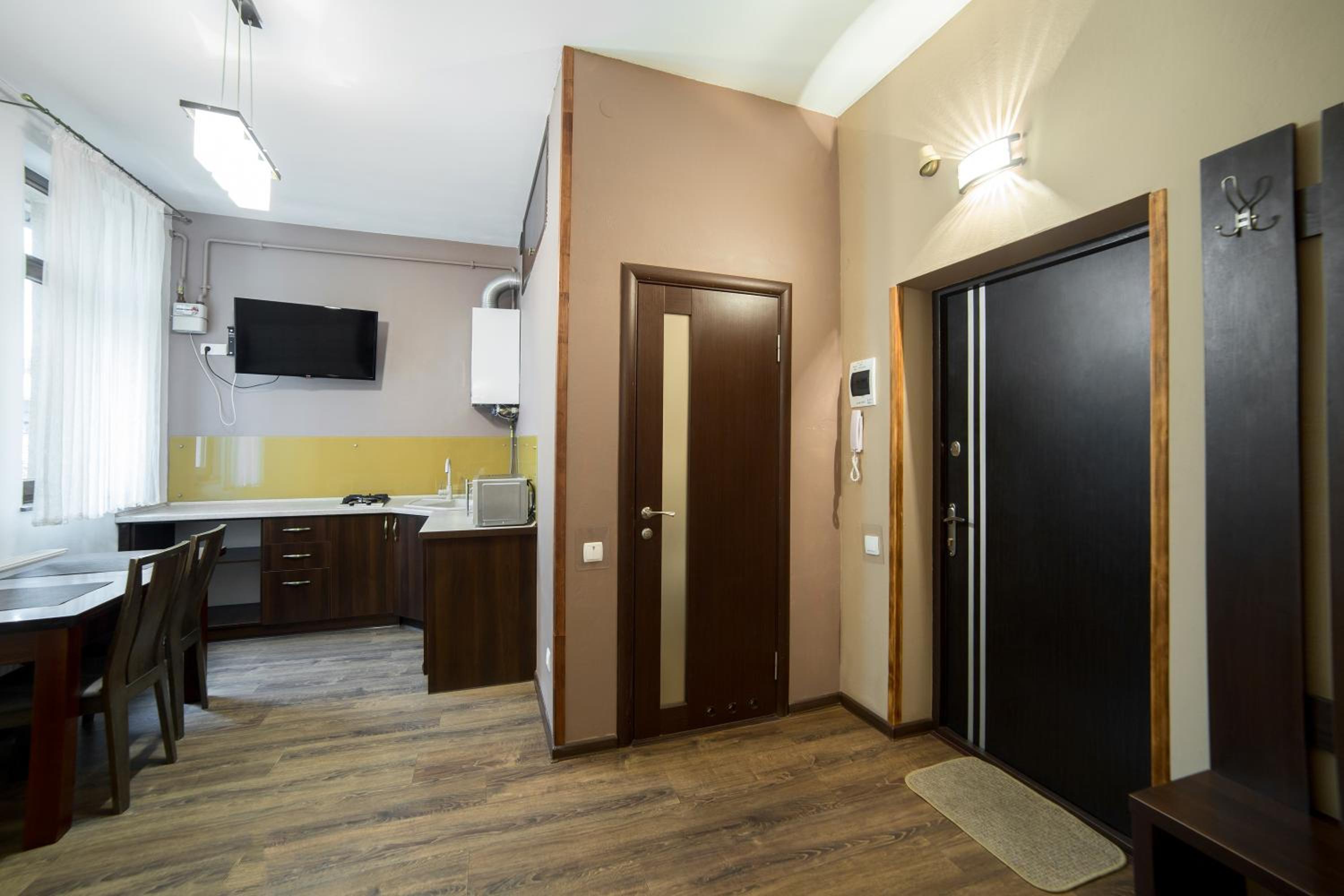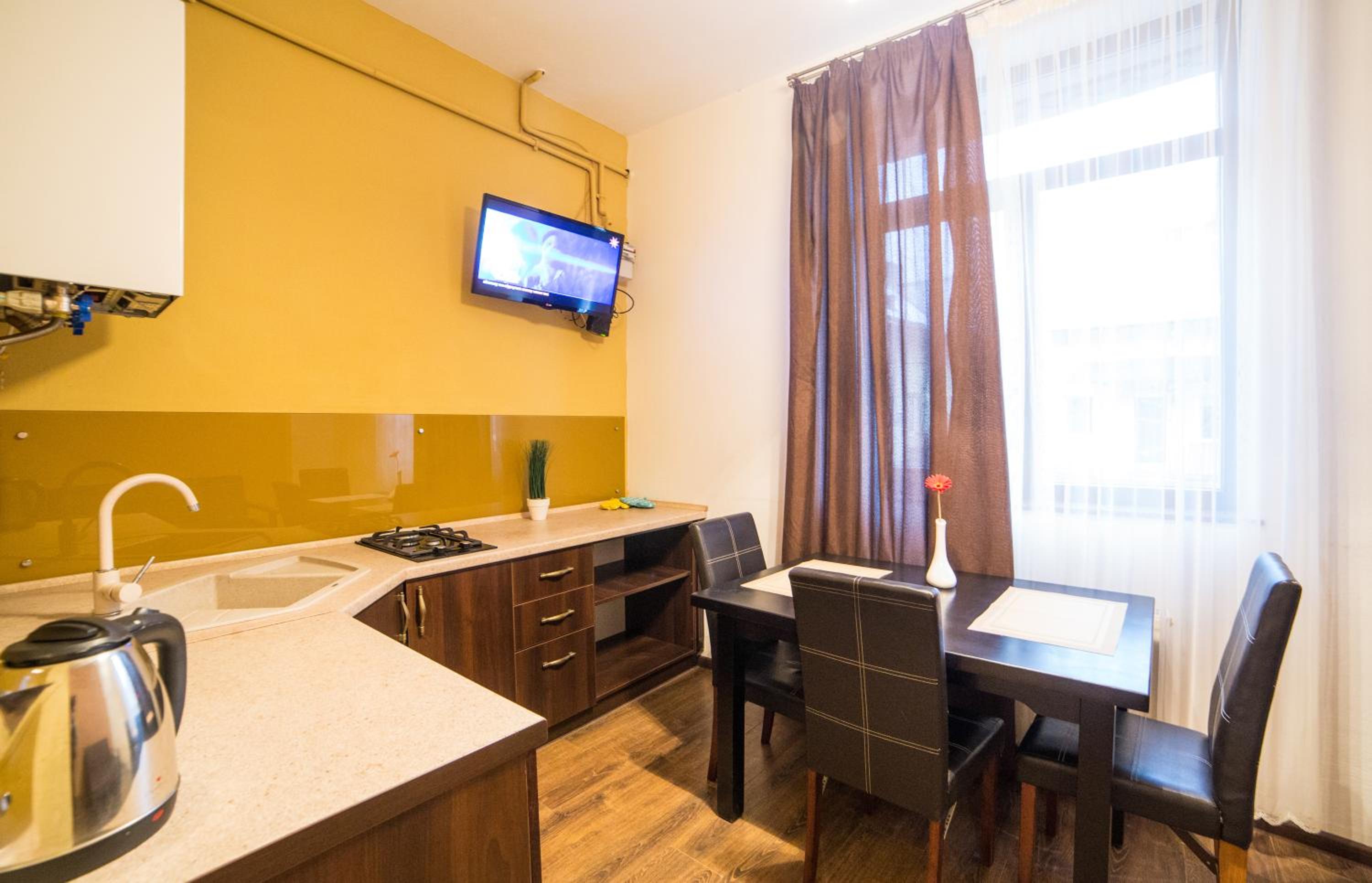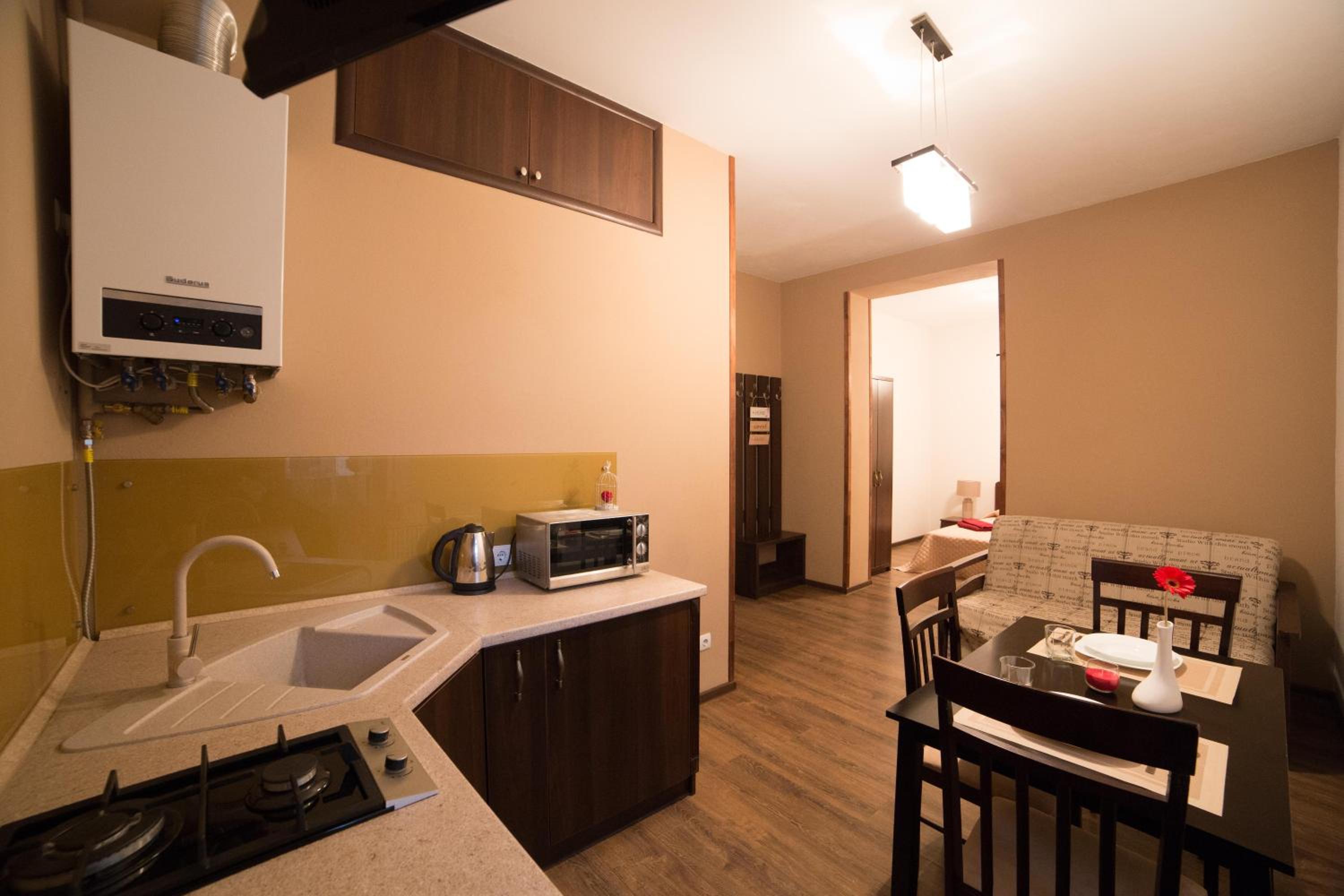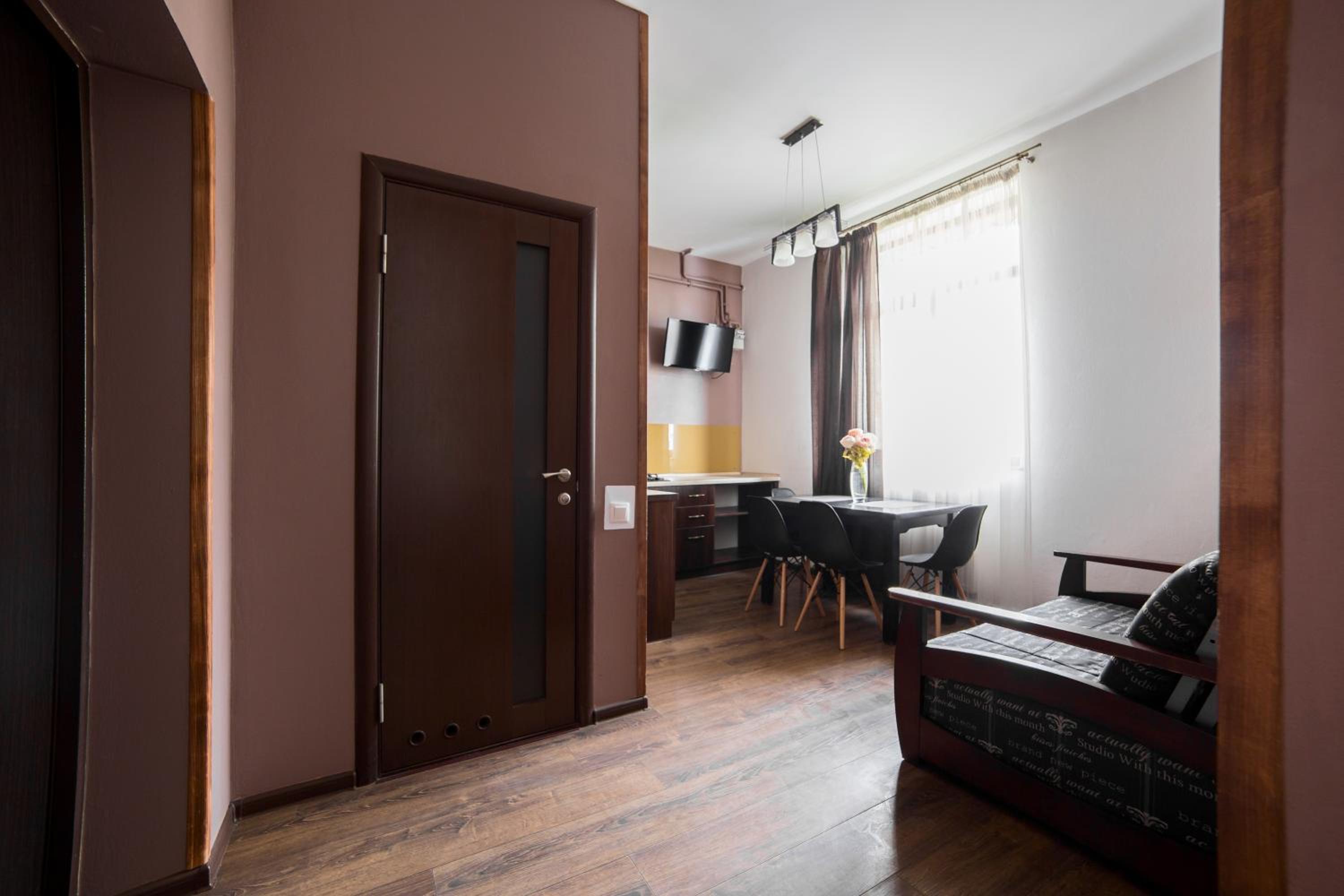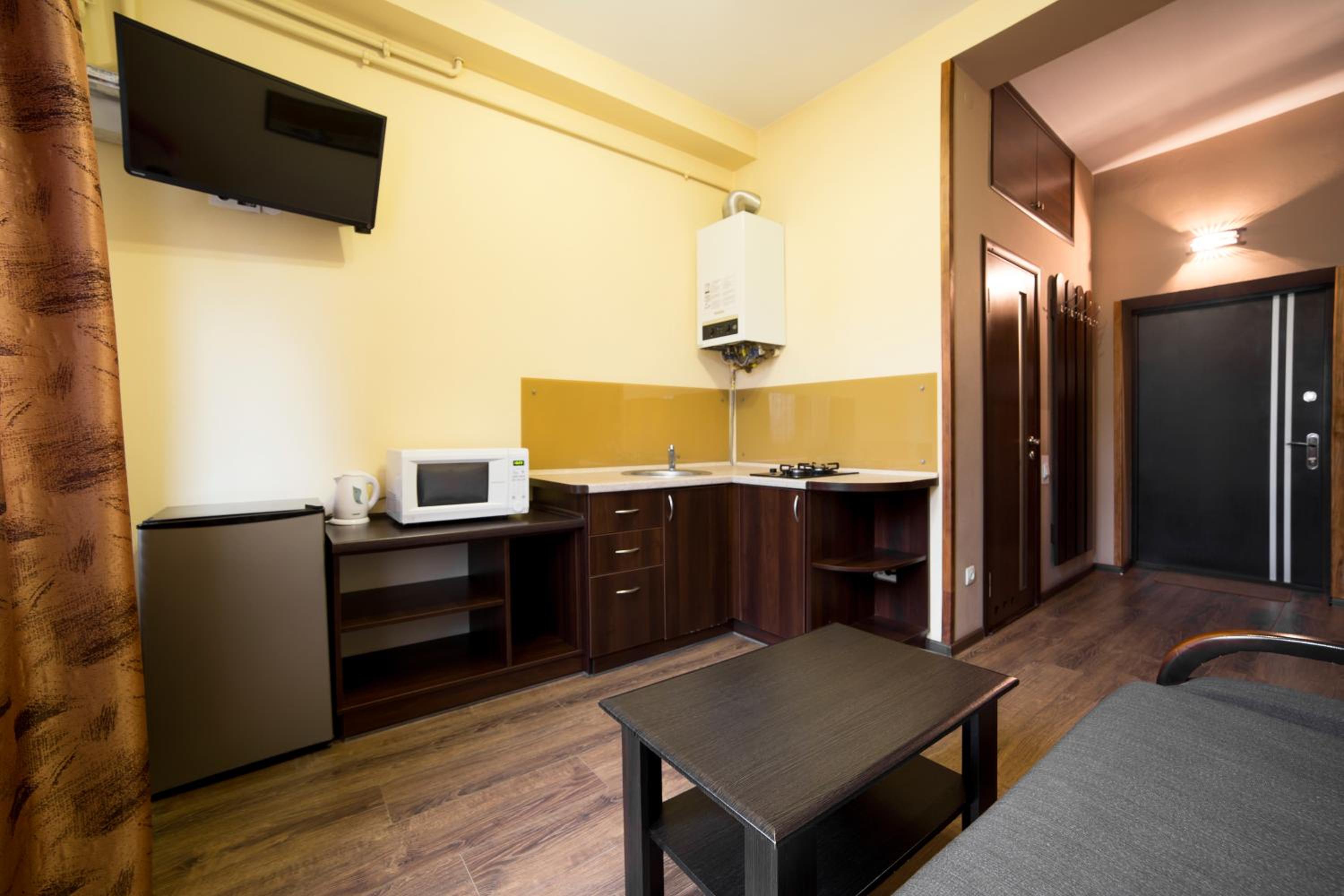 Aparthotel Na Mytniy in Lviv offers upscale accommodation with modern amenities. Each unit is equipped with a flat-screen TV, kitchenette, and a private bathroom ensuring a comfortable stay for guests.